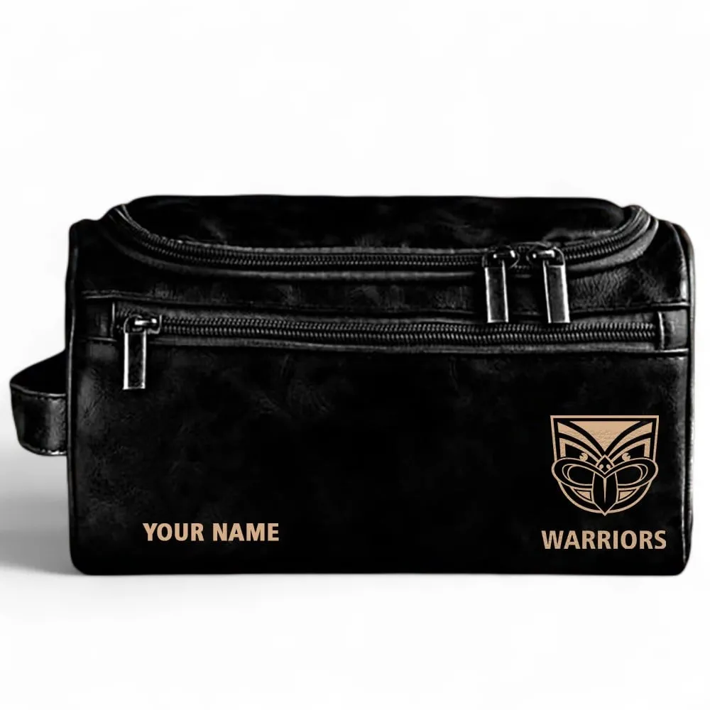 New Zealand Warriors  Fans Gift Leather Toiletry Bag, All Over Print Leather Toiletry Bag For Sport Fan, Custom Name NRL177071525669-Black