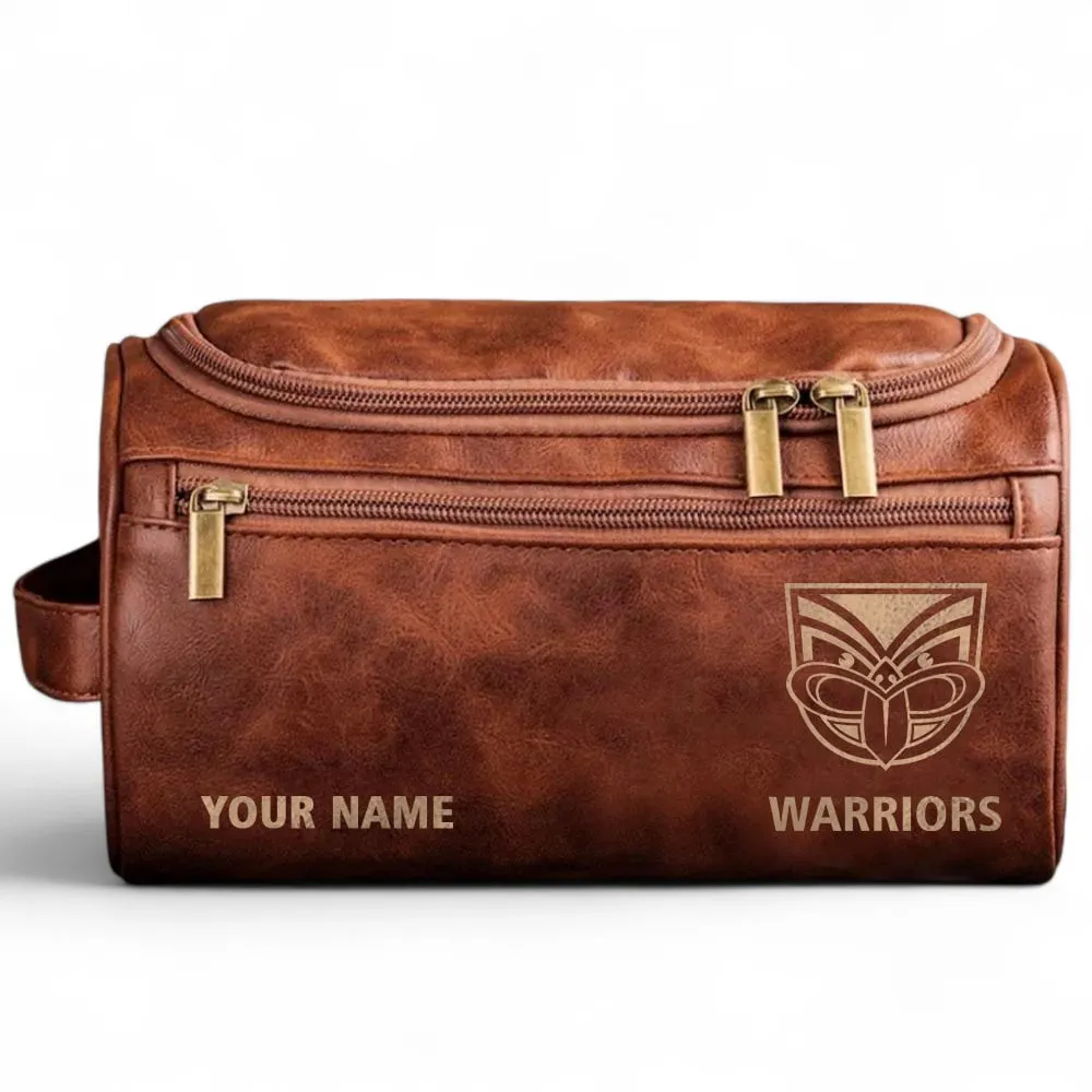 New Zealand Warriors  Fans Gift Leather Toiletry Bag, All Over Print Leather Toiletry Bag For Sport Fan, Custom Name NRL177071525669-Reddish Brown