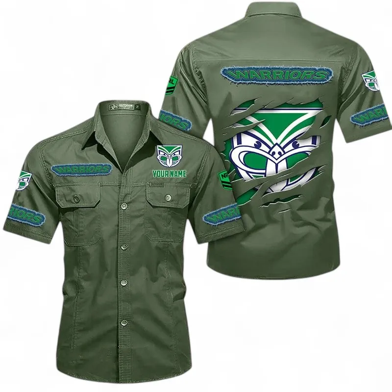 New Zealand Warriors Fans Gift Short Sleeved Shirt, All Over Print Short Sleeved Shirt For Sport Fan, Custom Name NRL172071625345-Army Green