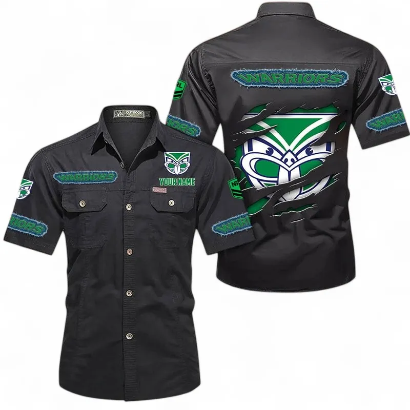 New Zealand Warriors Fans Gift Short Sleeved Shirt, All Over Print Short Sleeved Shirt For Sport Fan, Custom Name NRL172071625345-Black
