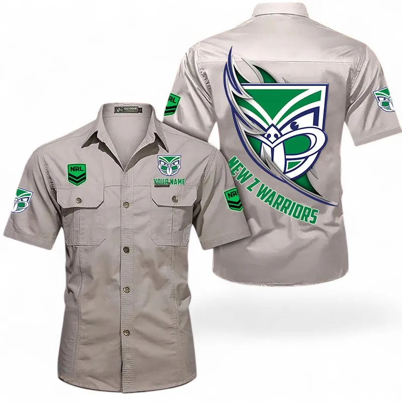 New Zealand Warriors Fans Gift Short Sleeved Shirt, All Over Print Short Sleeved Shirt For Sport Fan, Custom Name NRL173071625008-Khaki