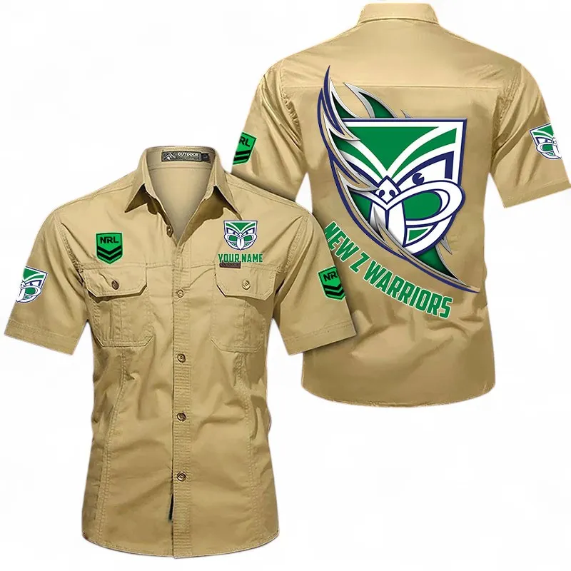 New Zealand Warriors Fans Gift Short Sleeved Shirt, All Over Print Short Sleeved Shirt For Sport Fan, Custom Name NRL173071625008-Khaki