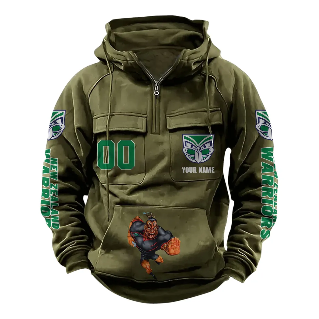 New Zealand Warriors NRL Tactical Quarter Zip Hoodie NRL43012125603, Gift For Fan New Zealand Warriors – Army Green