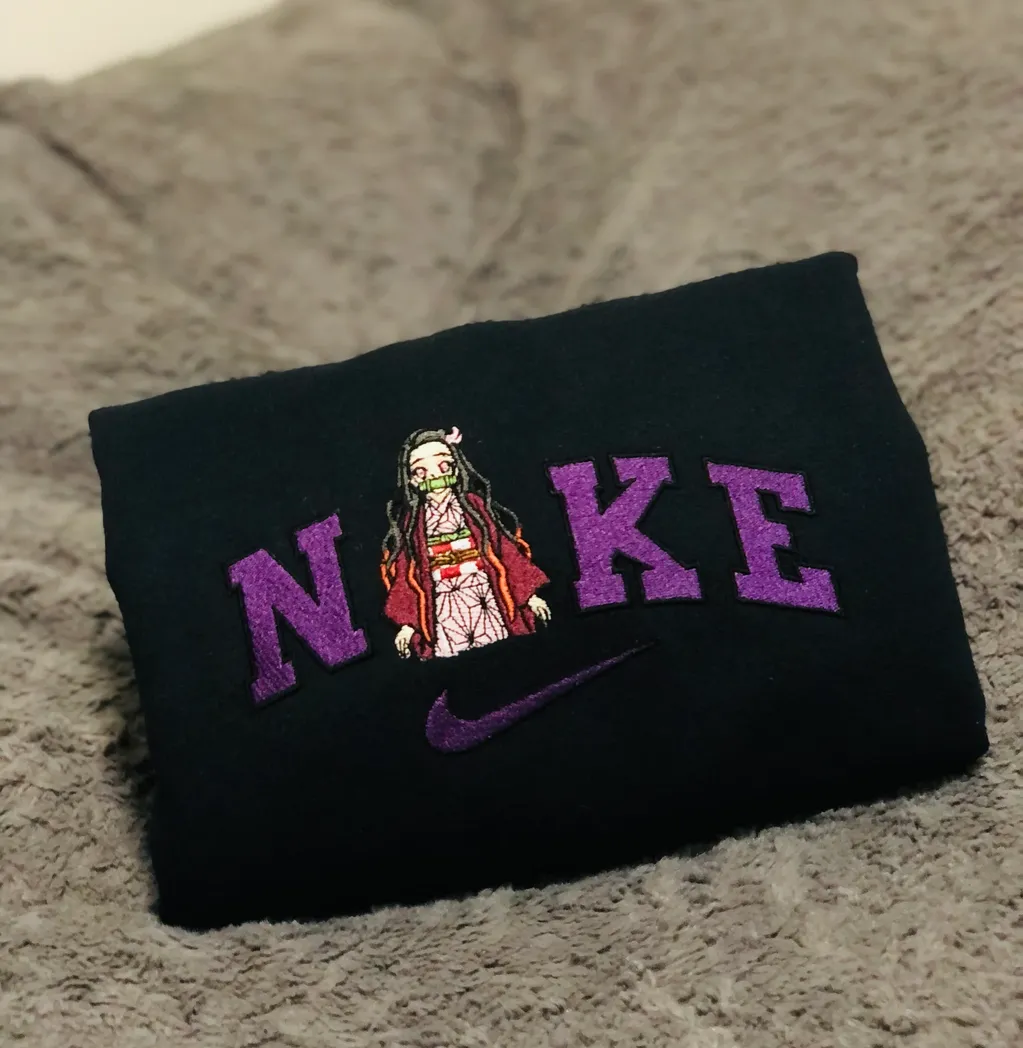 Nezuko Anime Demon Slayer x Nike Embroidered Sweatshirt Fashion Style For Couples, Valentines Gift For Him/Her