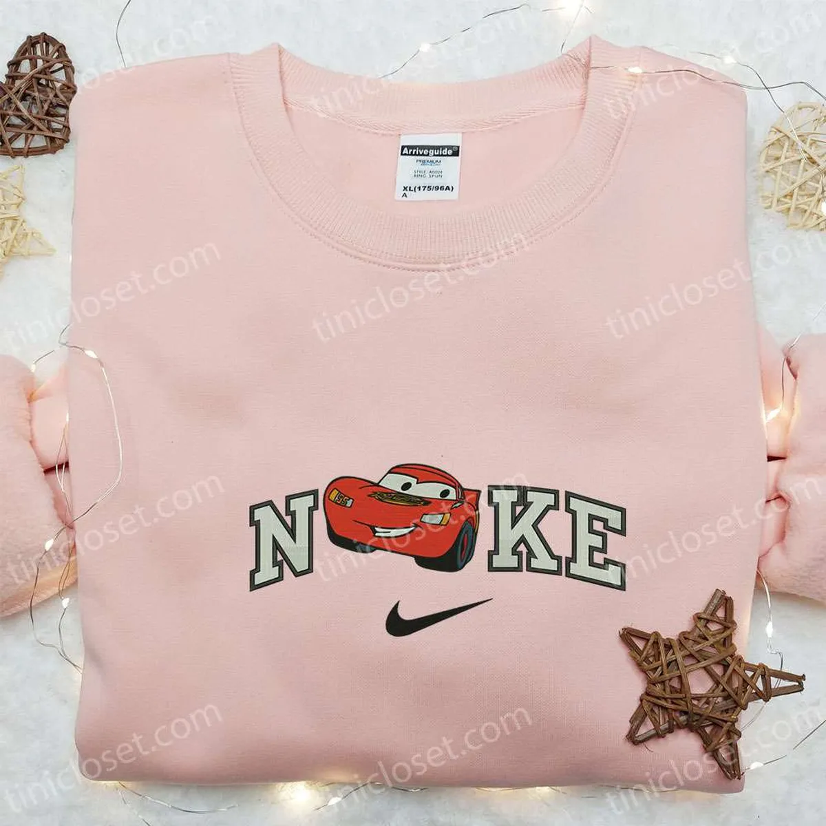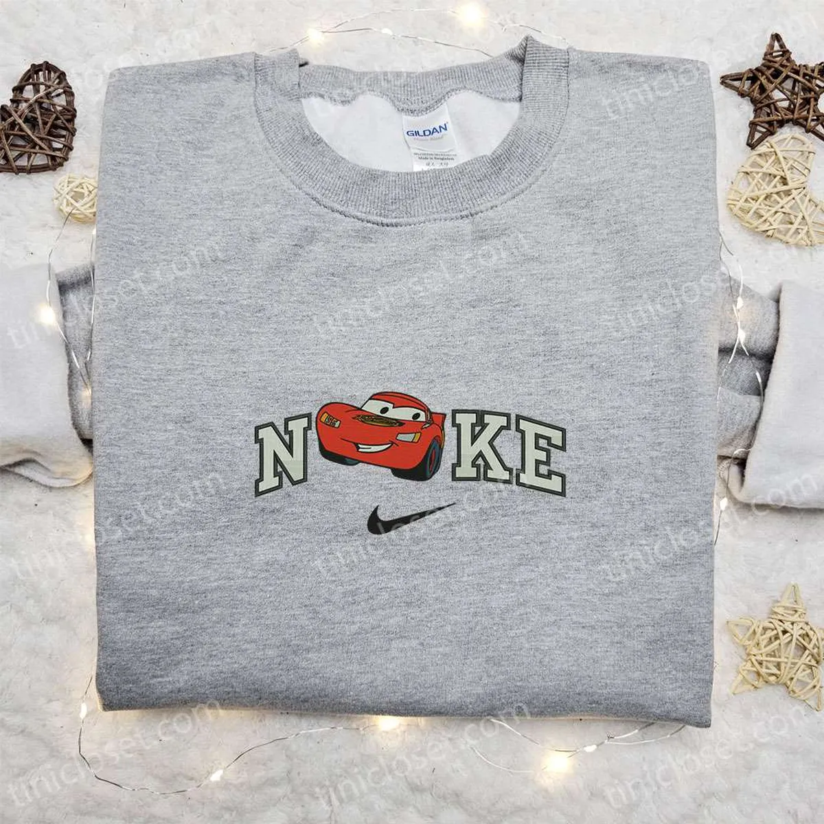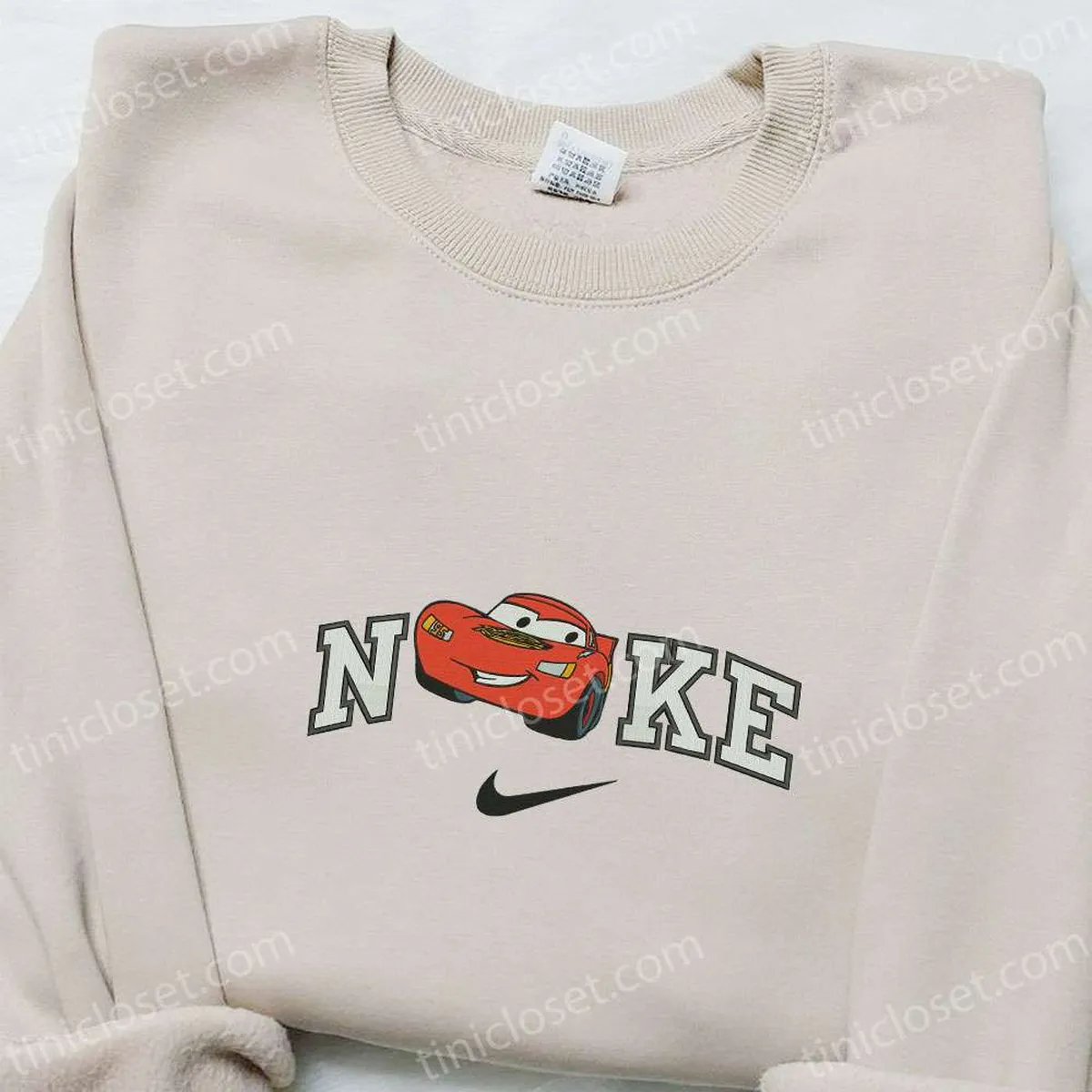 Nike x Cars Lightning McQueen Embroidered T-shirt, Disney Pixar Cars Embroidered Hoodie, Nike Inspired Embroidered Sweatshirt
