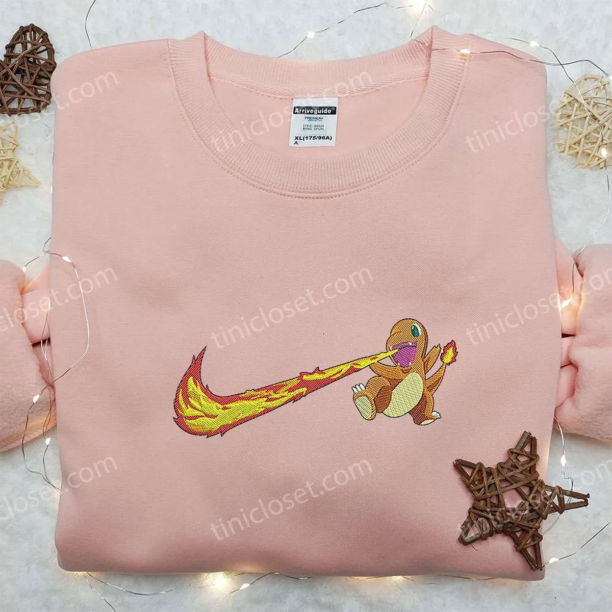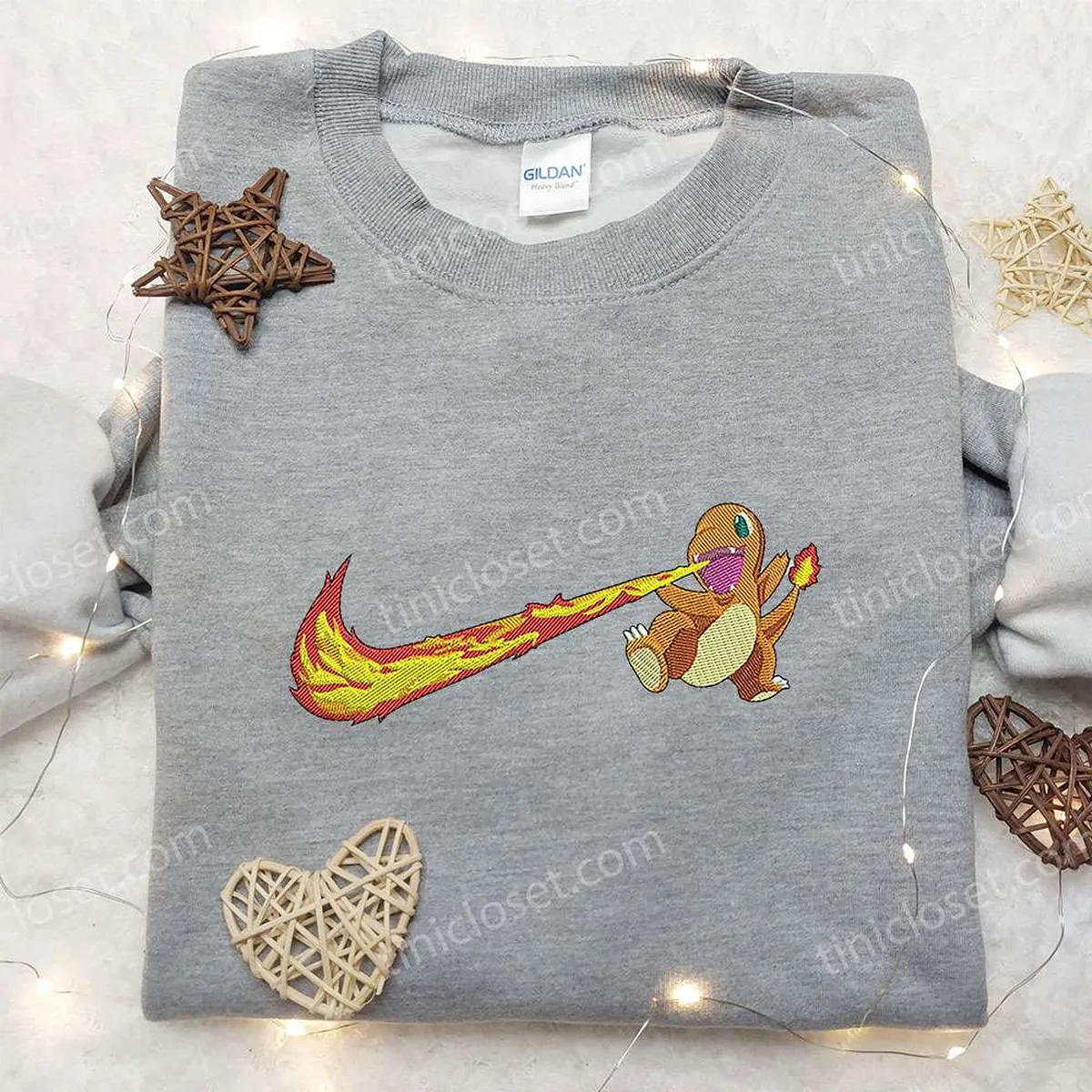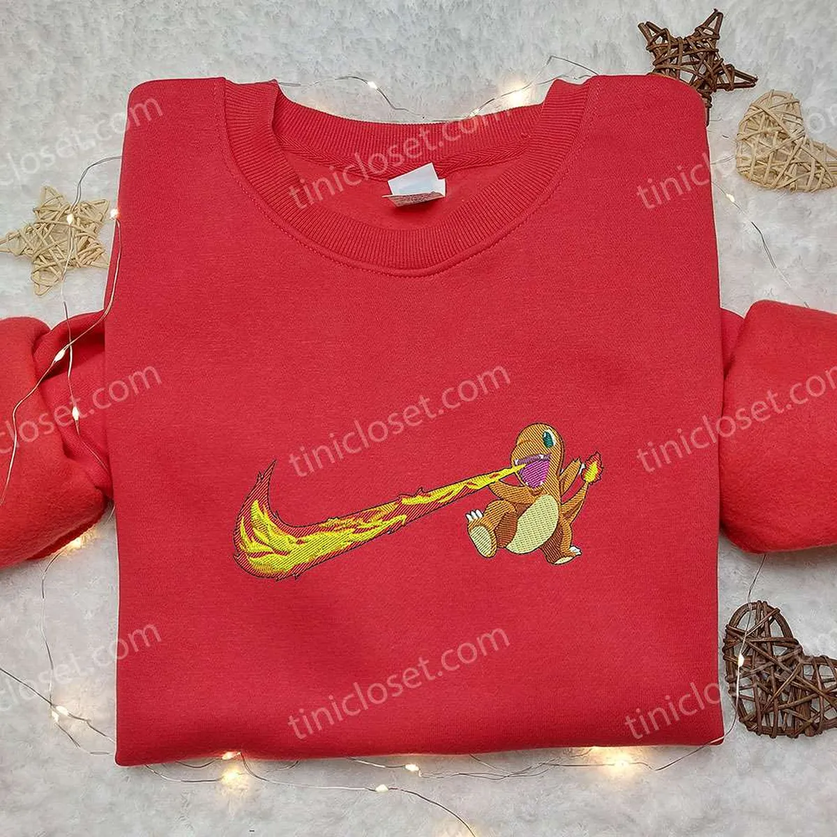 Nike x Charmander Embroidered Shirt, Pokemon Embroidered Shirt, Custom Nike Embroidered Shirt