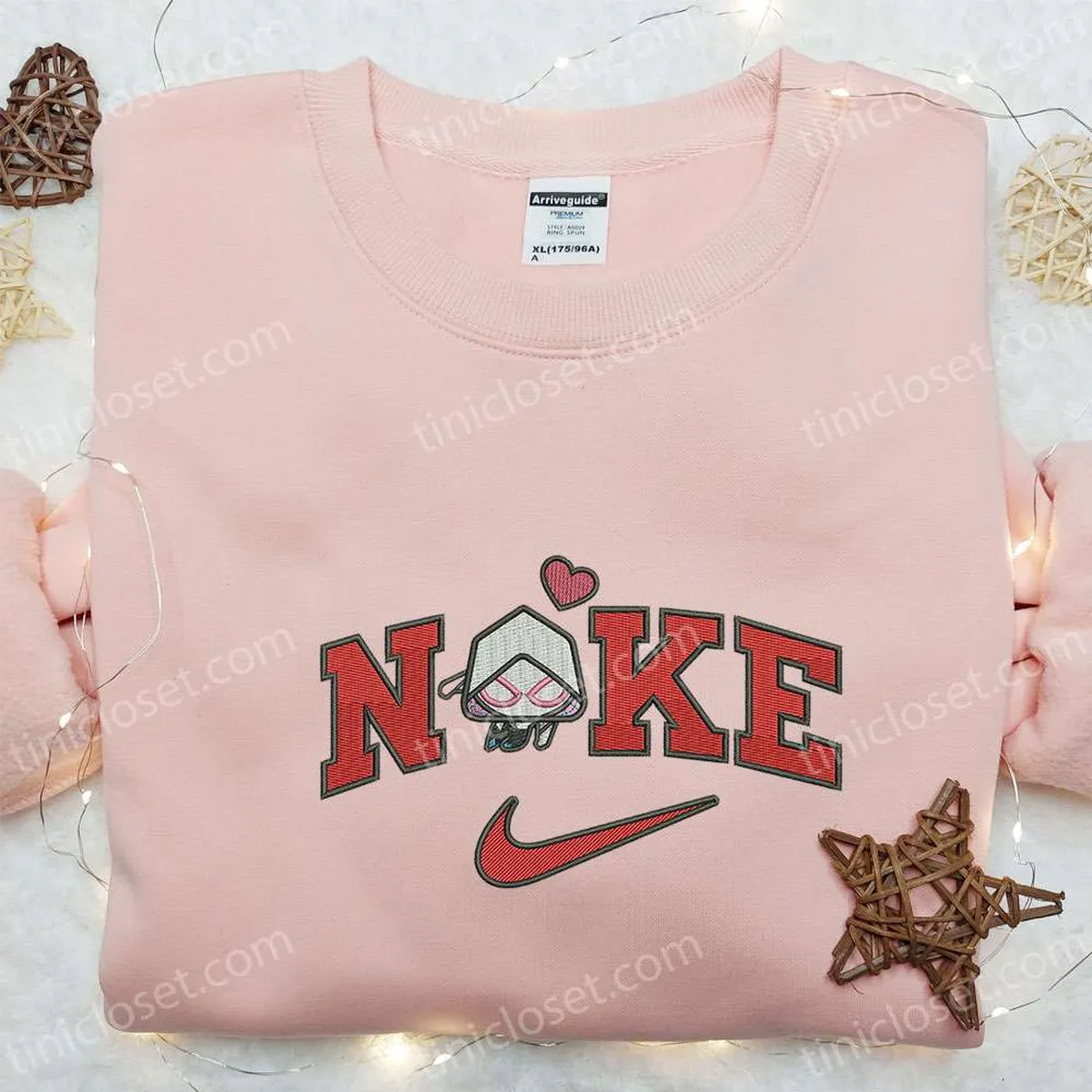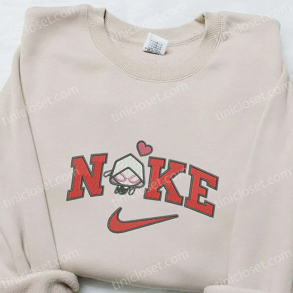 Nike x Chibi Gwen Heart Movie Embroidered Sweatshirt, Marvel Universe Embroidered Hoodie, Custom Nike Embroidered T-shirt