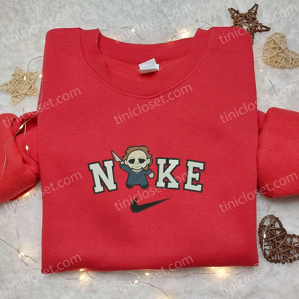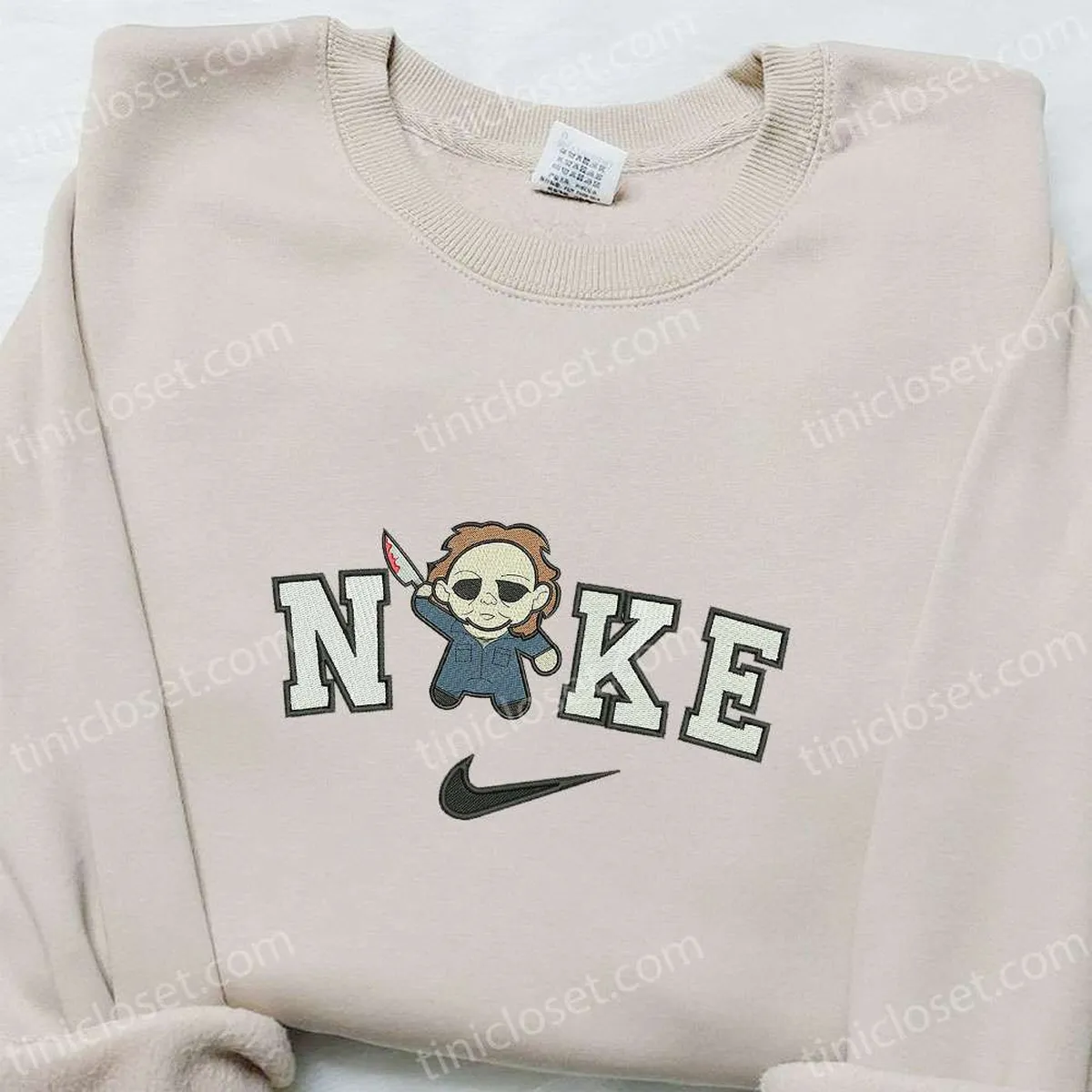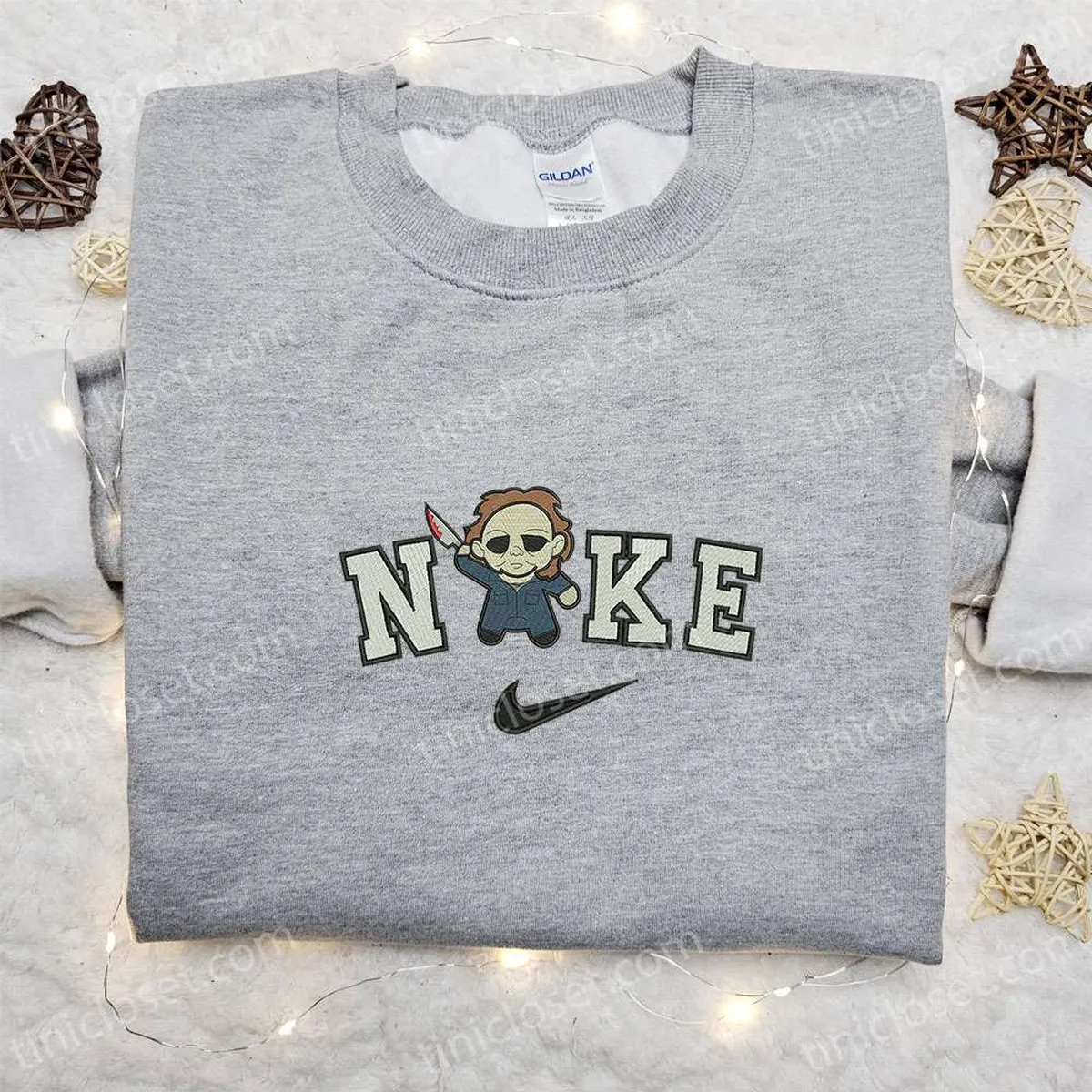 Nike x Chibi Michael Myers Embroidered Shirt, Horror Movie Embroidered Shirt, Nike Inspired Embroidered Shirt