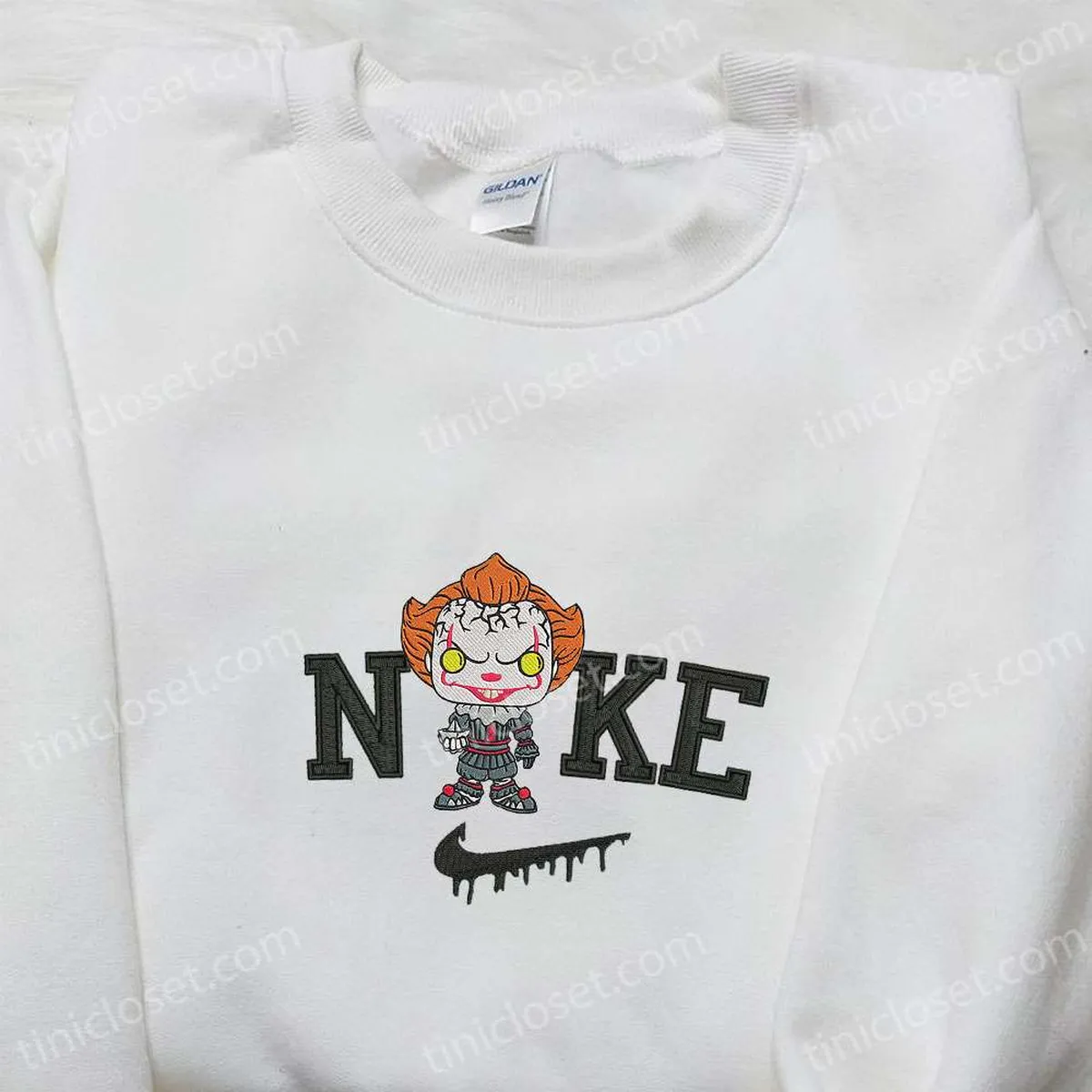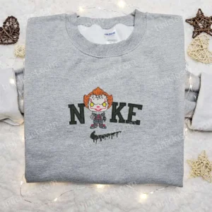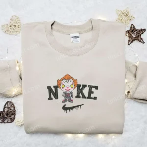 Nike x Chibi Pennywise Embroidered Shirt, Funny Halloween Embroidered Hoodie, Best Gifts for Halloween Lovers