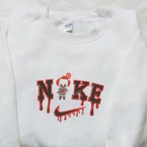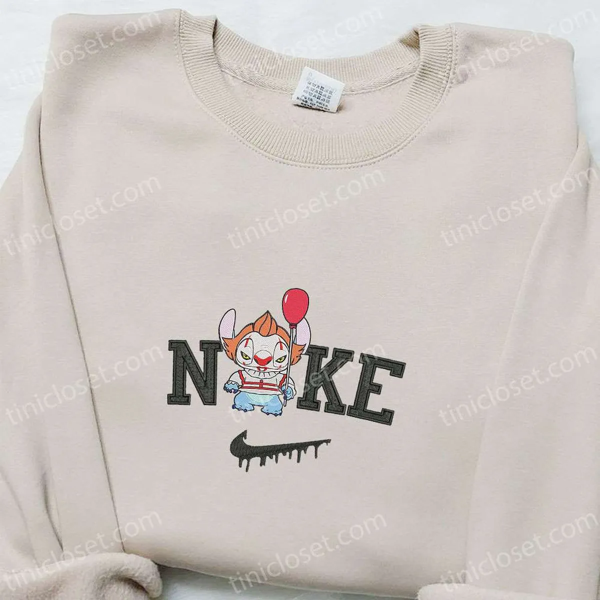 Nike x Chibi Pennywise Stitch Balloon Embroidered Shirt, Disney Halloween Embroidered Hoodie, Best Gifts for Halloween Lovers