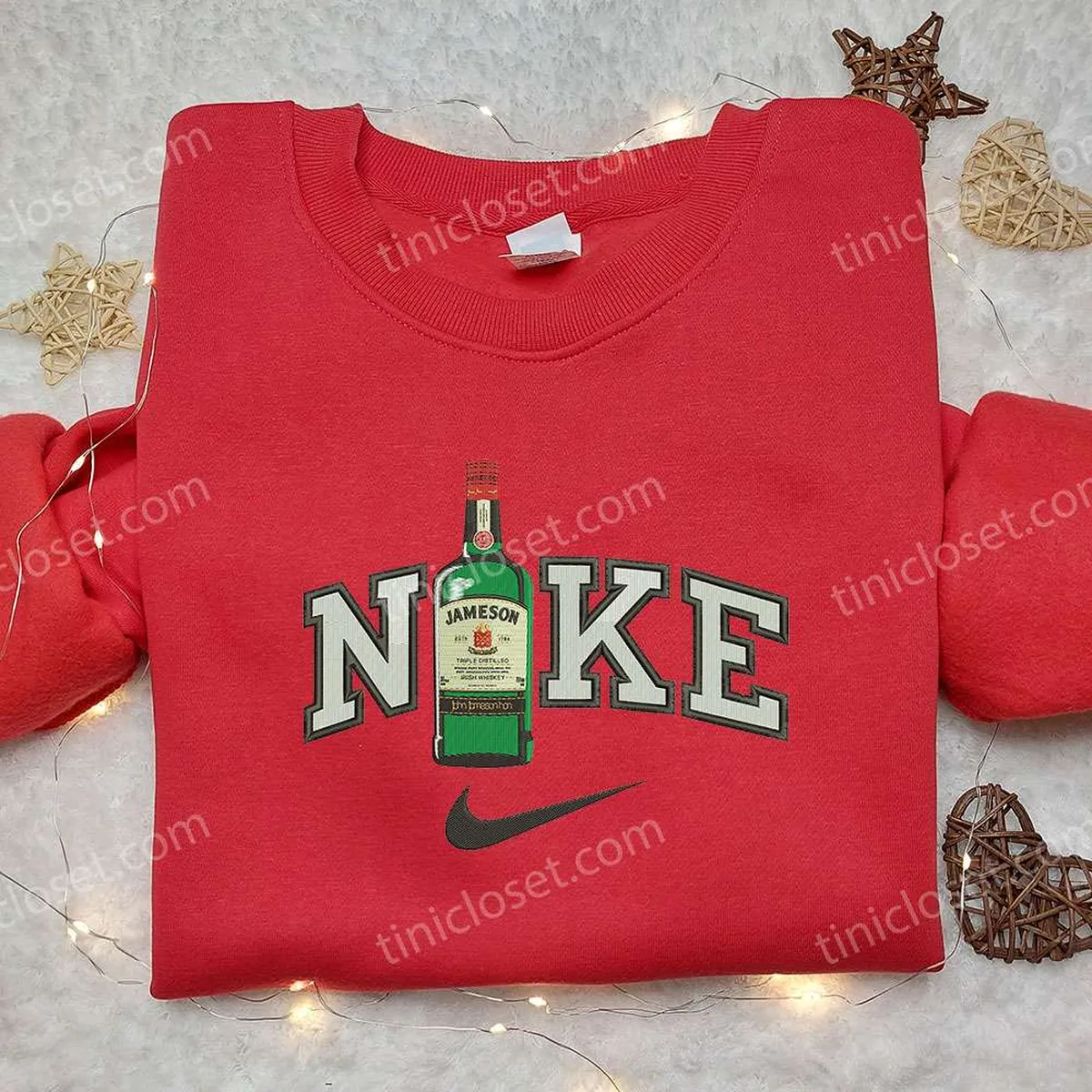 Nike x Jameson Bottle Embroidered Shirt, Favor Drinking Embroidered Shirt, Custom Nike Embroidered Shirt