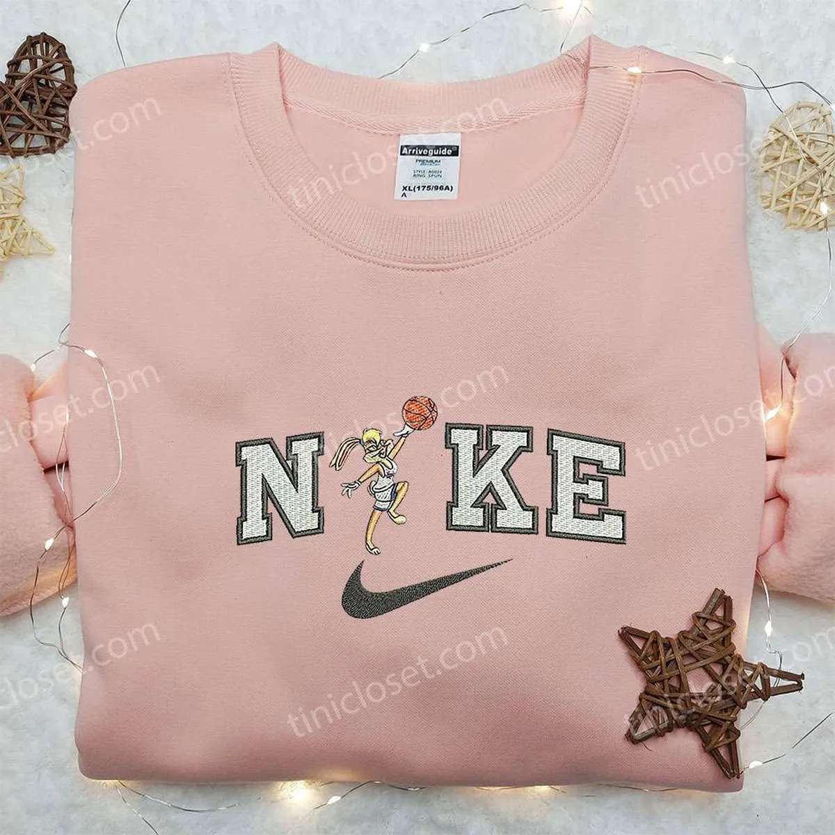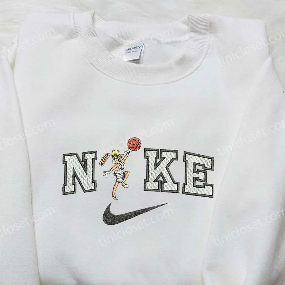 Nike x Lola Bunny Playing Basketball Embroidered Shirt, Cartoon Embroidered Shirt, Custom Nike Embroidered Shirt