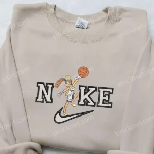 Nike x Lola Bunny Playing Basketball Embroidered Shirt, Cartoon Embroidered Shirt, Nike Inspired Embroidered Shirt