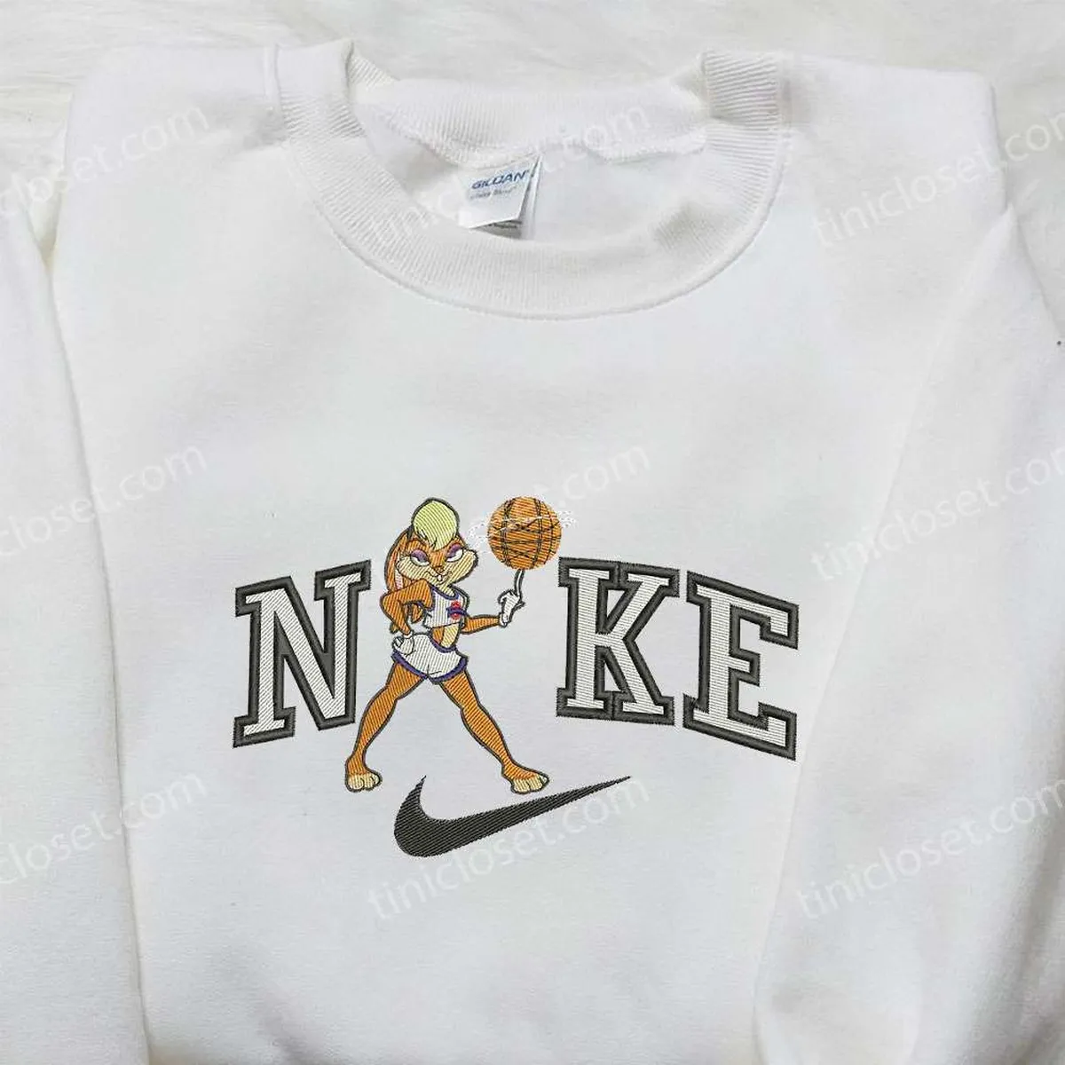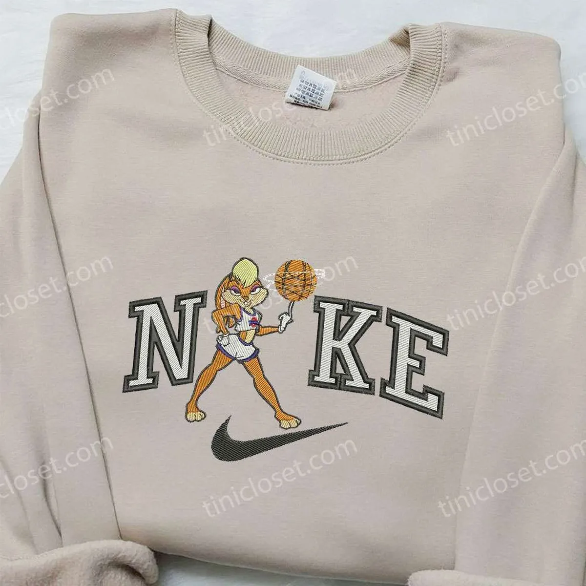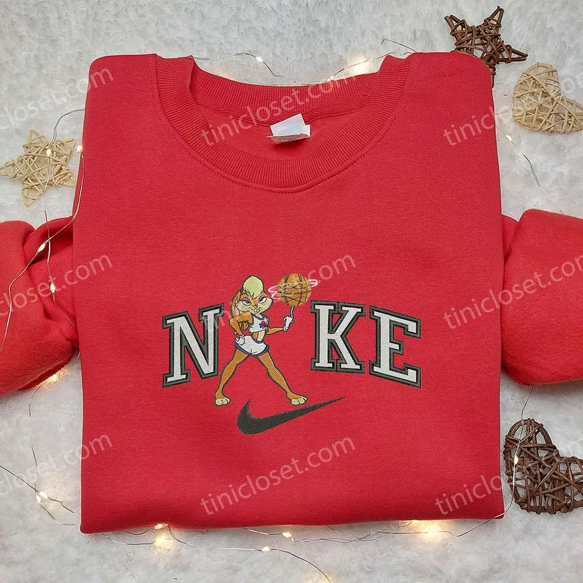 Nike x Lola Bunny Spinning Basketball Embroidered Shirt, Cartoon Embroidered Shirt, Custom Nike Embroidered Shirt