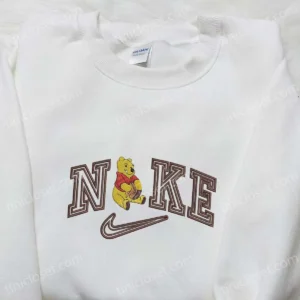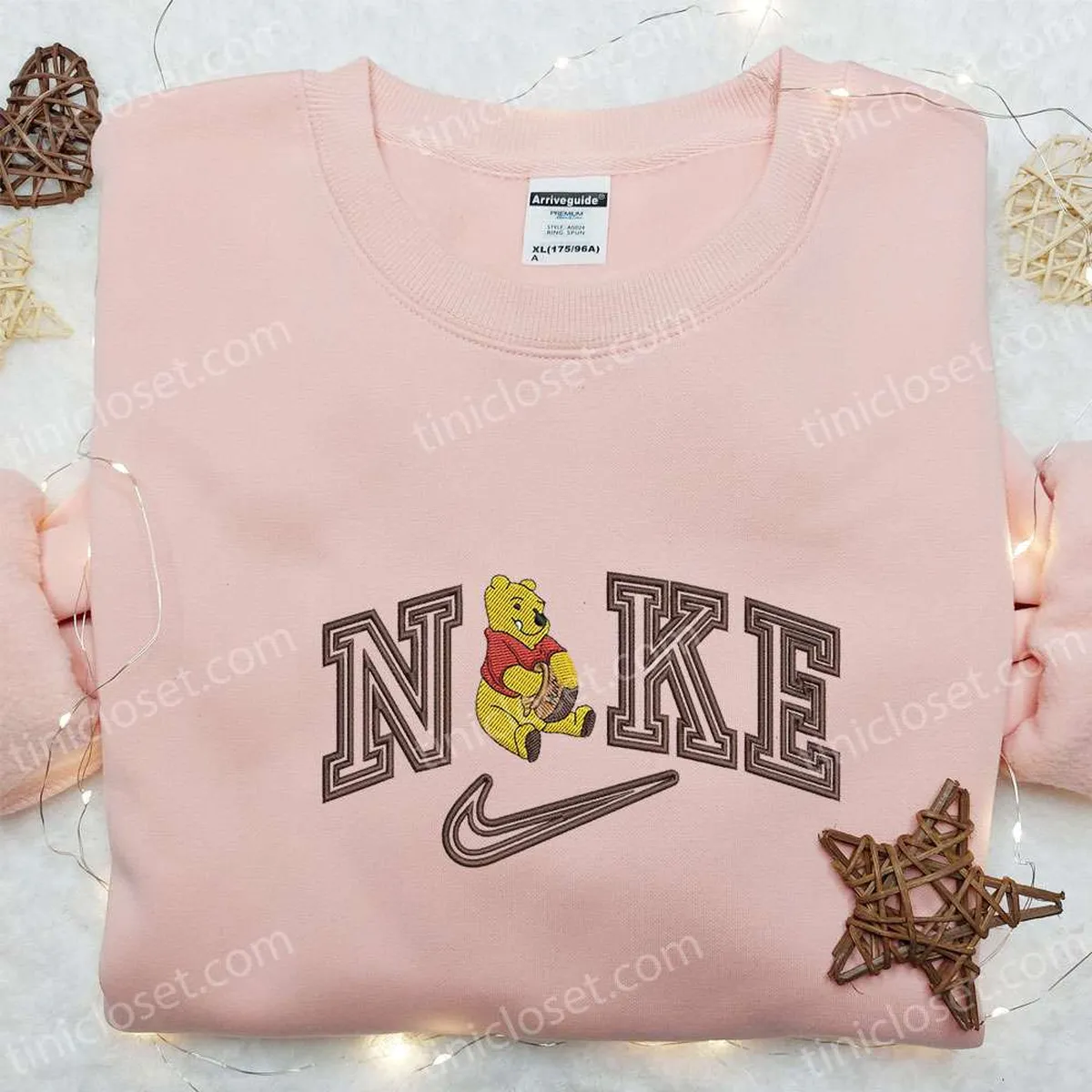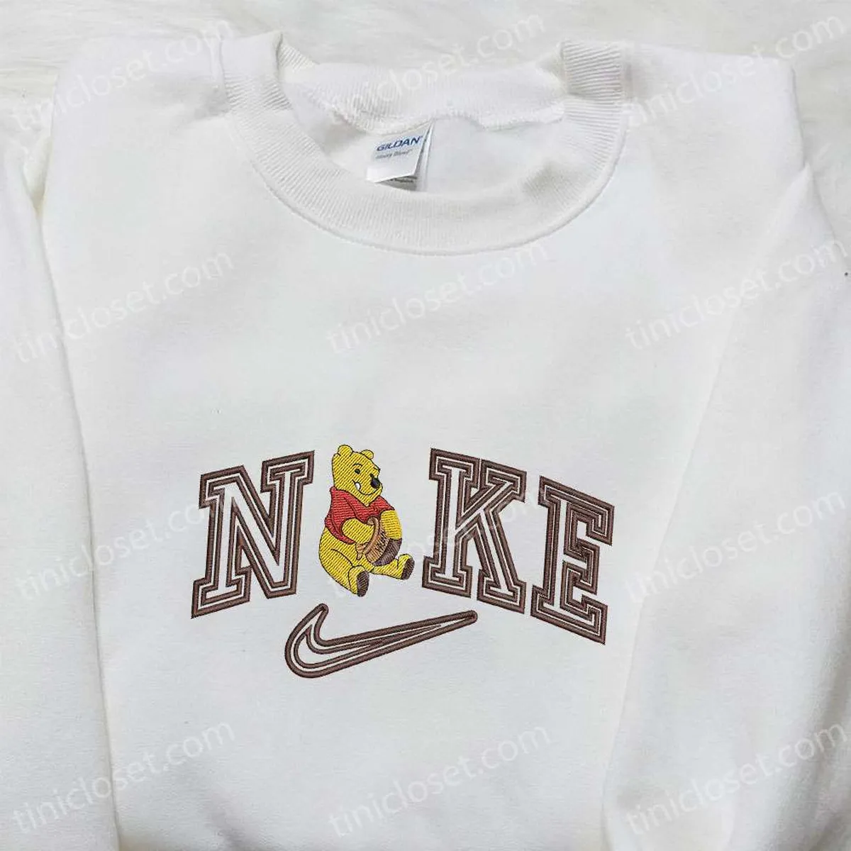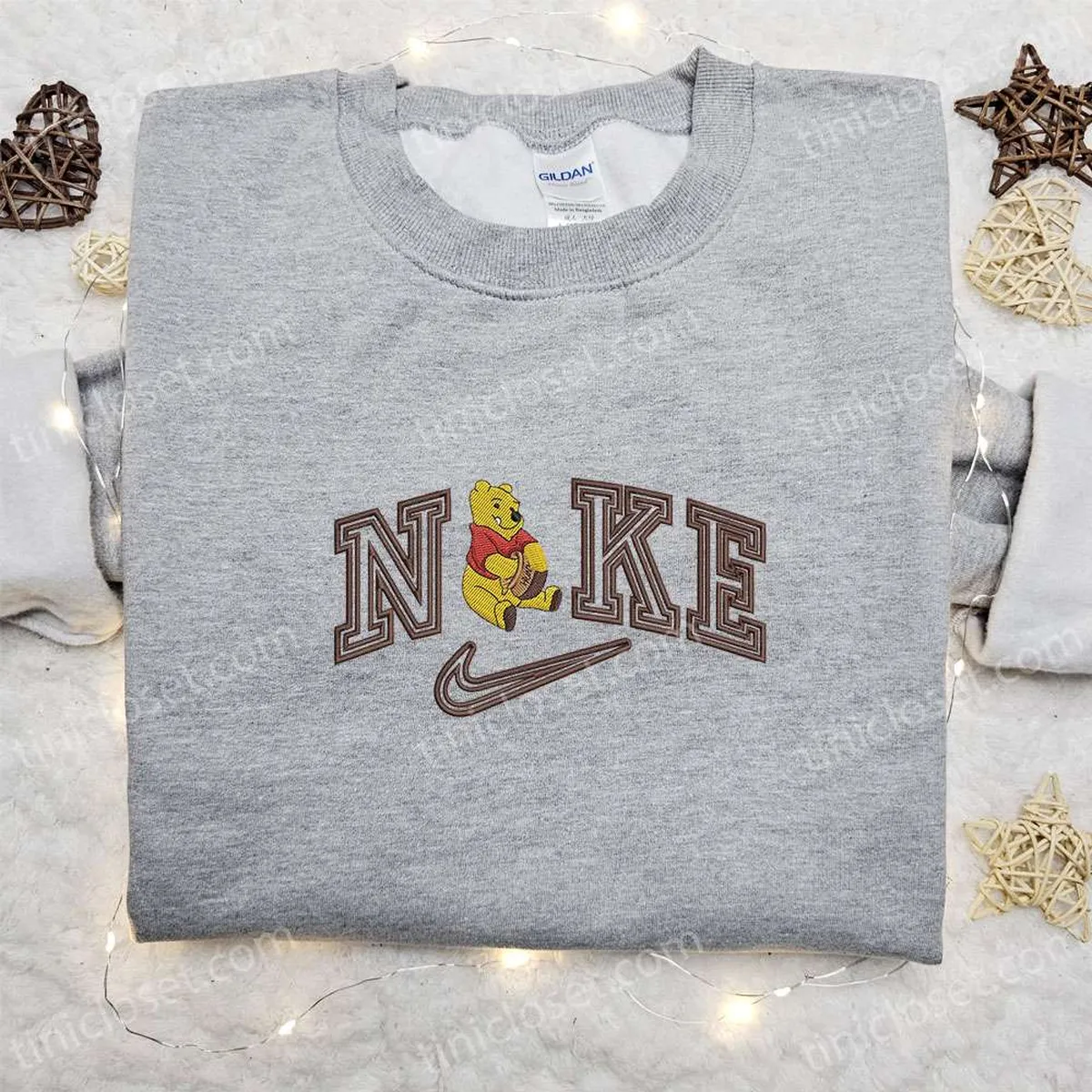 Nike x Winnie the Pooh Cartoon Embroidered Sweatshirt, Disney Characters Embroidered Shirt, Nike Inspired Embroidered T-shirt