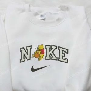 Nike x Winnie the Pooh Christmas Light Embroidered Shirt, Disney Embroidered Hoodie, Family Christmas Sweatshirts