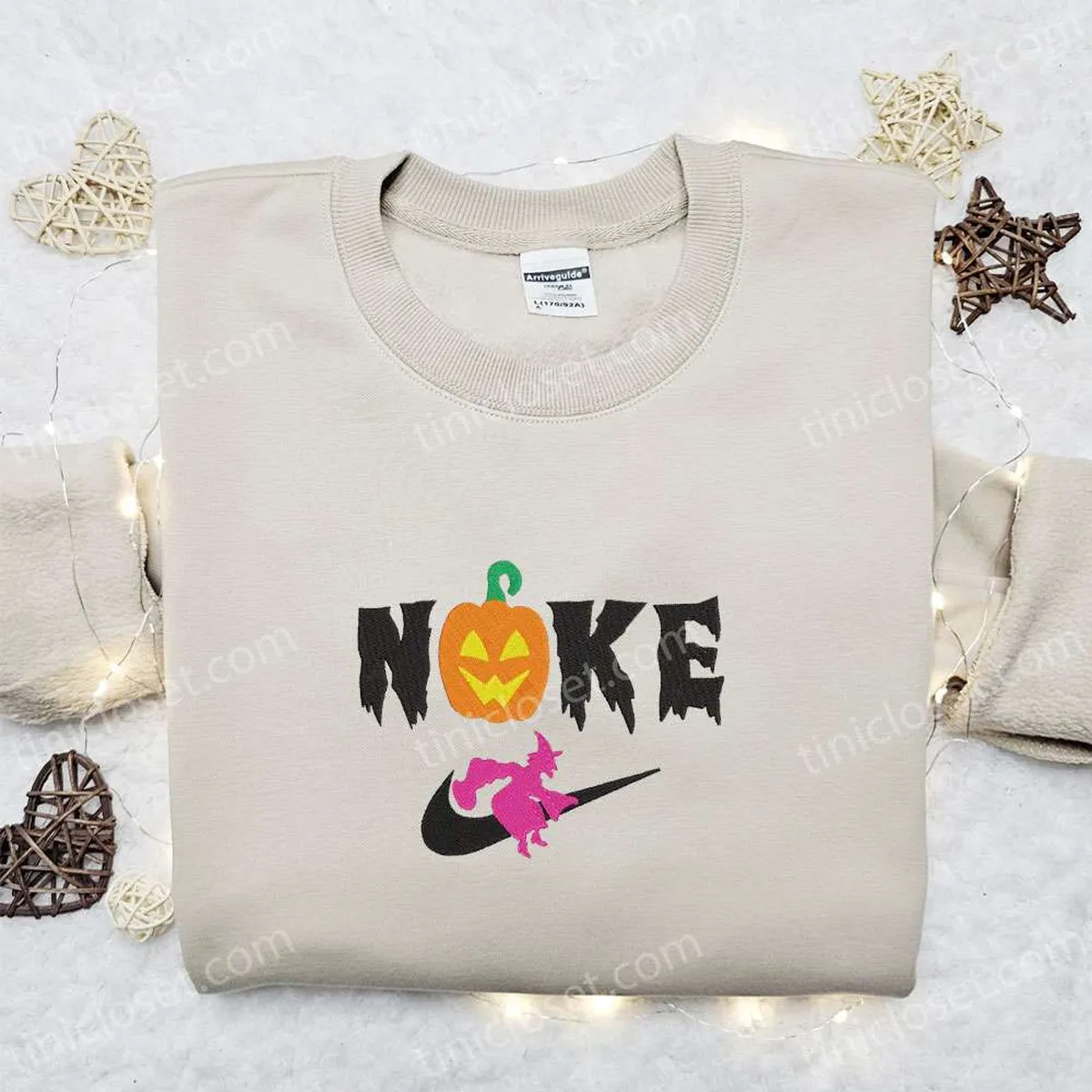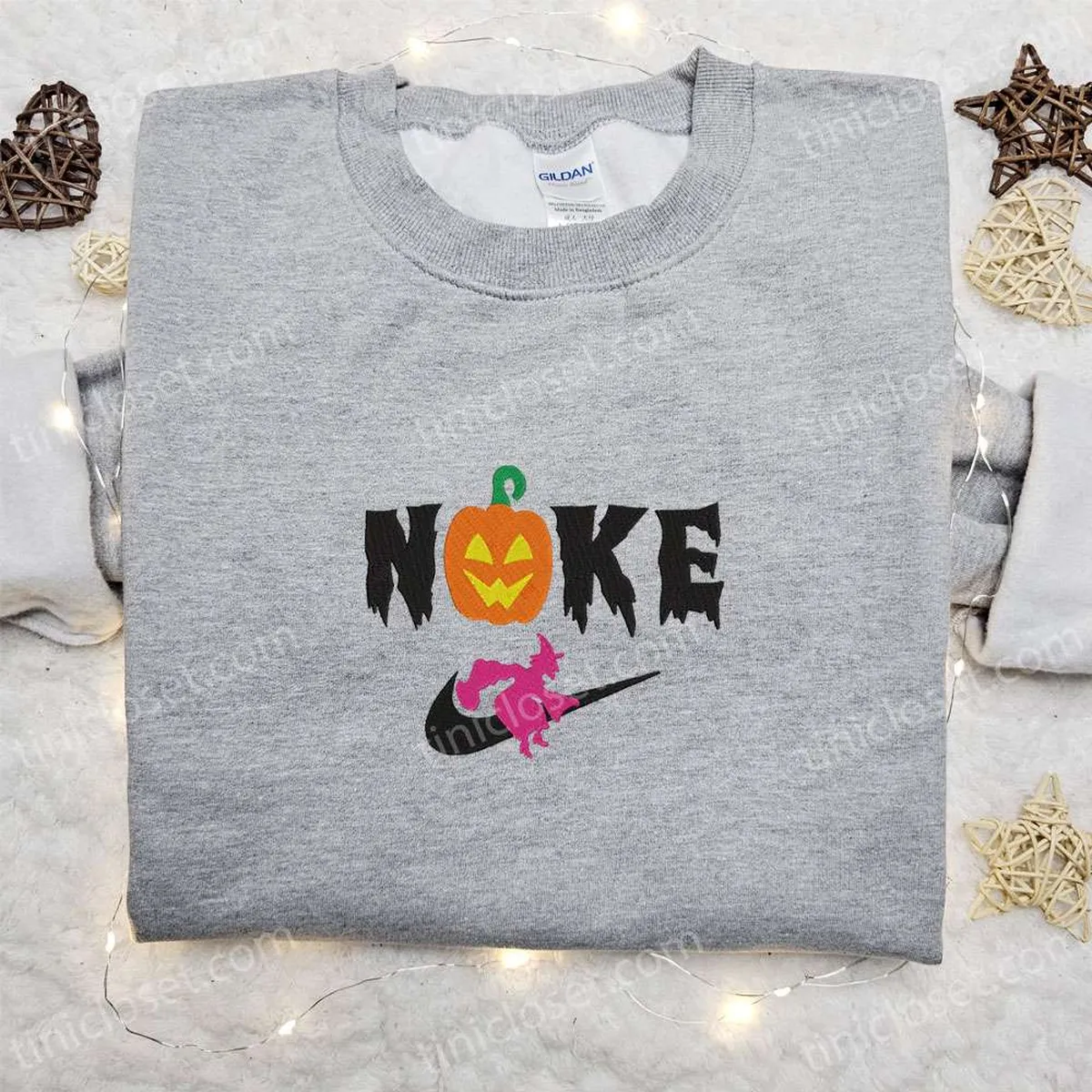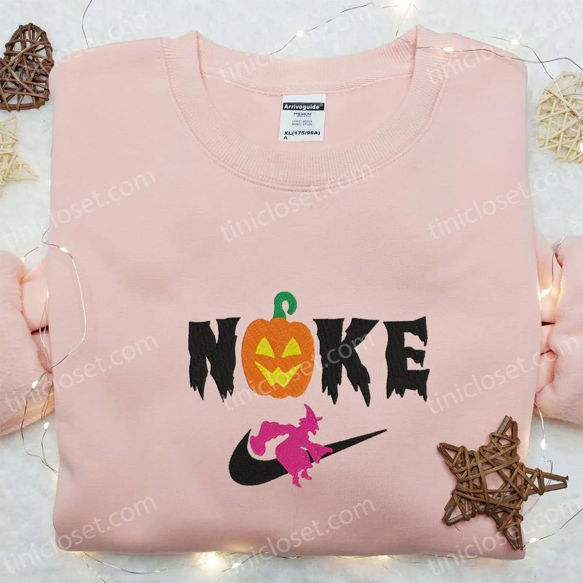 Nike x Witch and Pumpkin Embroidered Sweatshirt, Nike Inspired Embroidered Shirt, Best Halloween Gift Ideas