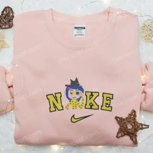 Nike x Witch Button Eyed Girl Halloween Embroidered Shirt, Adorable Halloween Embroidered Shirt, Nike Inspired Embroidered Shirt