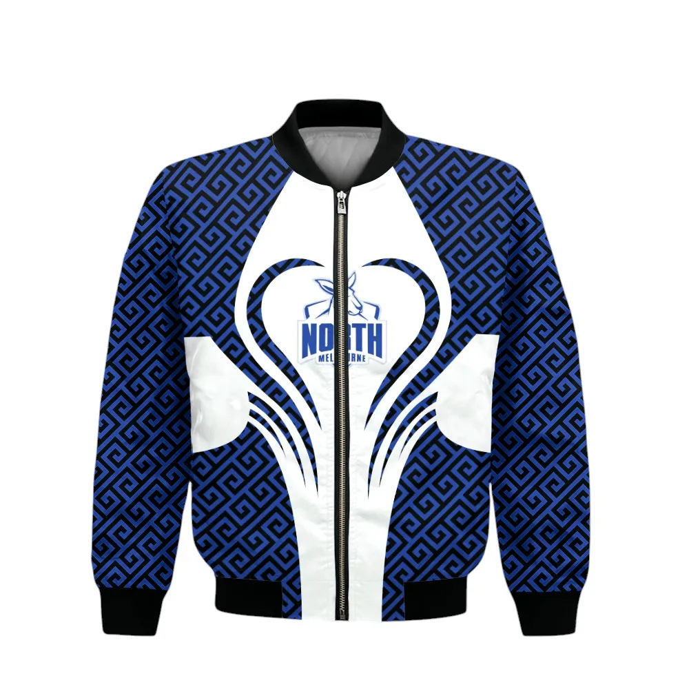 Rep your loyalty in style with this custom North Melbourne bomber jacket, built for fans who want to stay warm, look sharp, and show their pride all season long. With a classic silhouette and a fresh custom print, it’s the ultimate blend of team spirit and street-ready fashion.