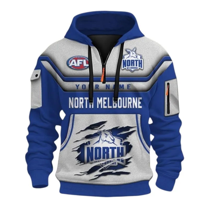 North Melbourne Fans Gift Hoodie Half Zip 3D, All Over Print Half Zip 3D For Sport Fan, Custom Name AFL164080225133-Style 1