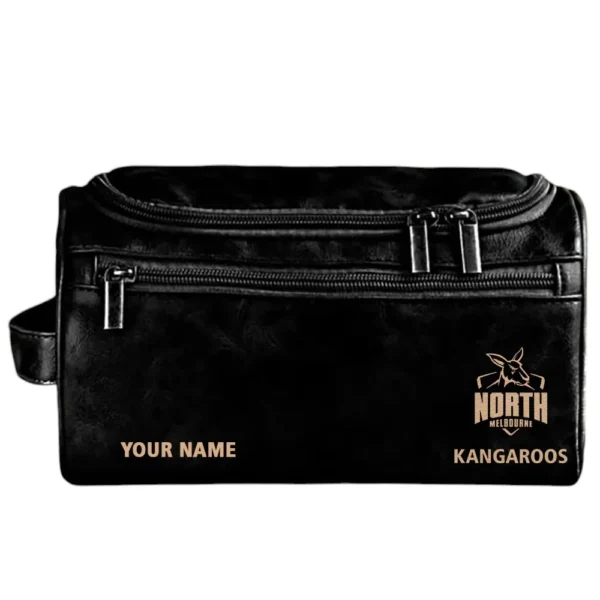 North Melbourne Fans Gift Leather Toiletry Bag, All Over Print Leather Toiletry Bag For Sport Fan, Custom Name AFL156071525129 – Black