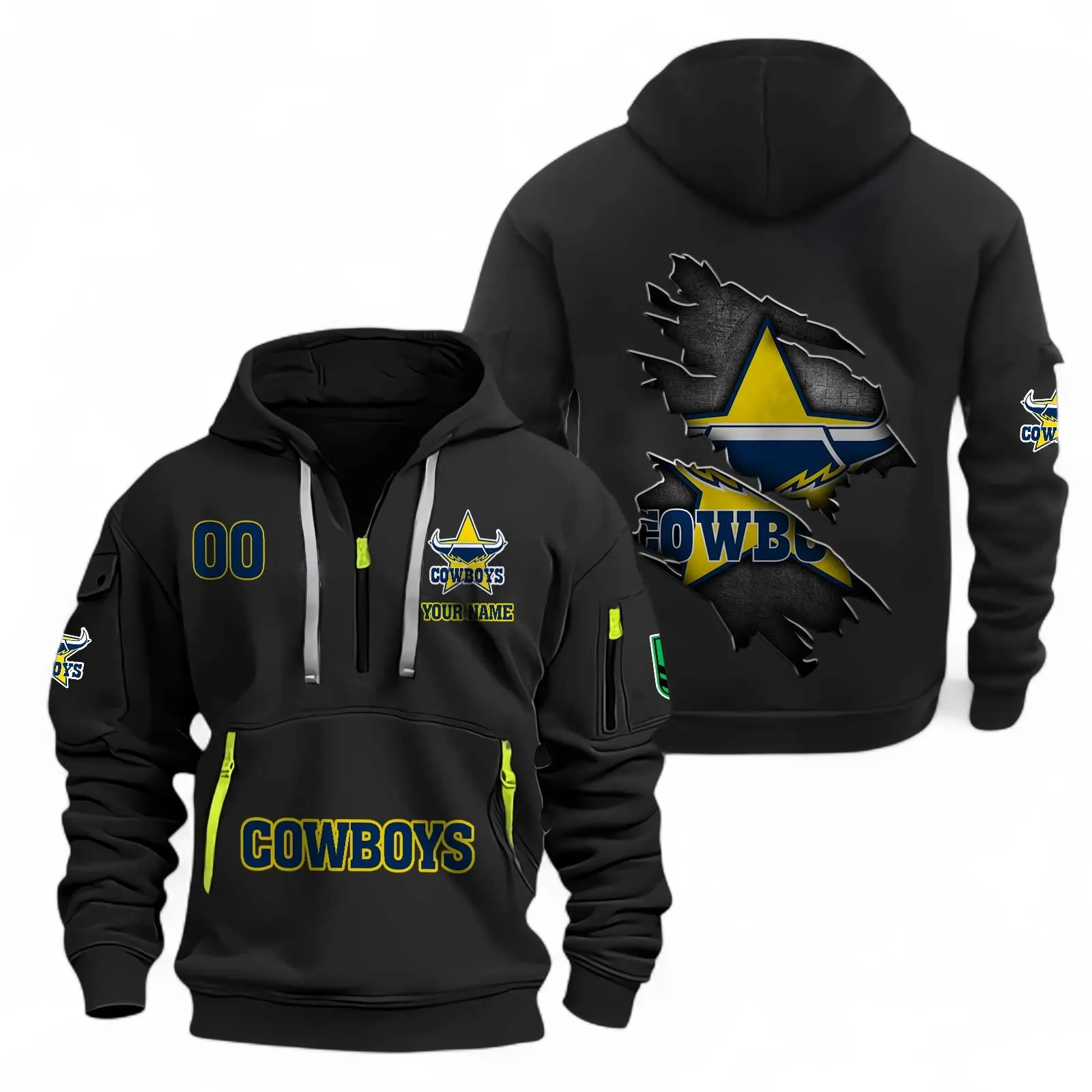 North Queensland Cowboys Fans Gift Hoodie Half Zipper, All Over Print Hoodie Half Zipper For Sport Fan, Custom Name NRL170071525344-Black