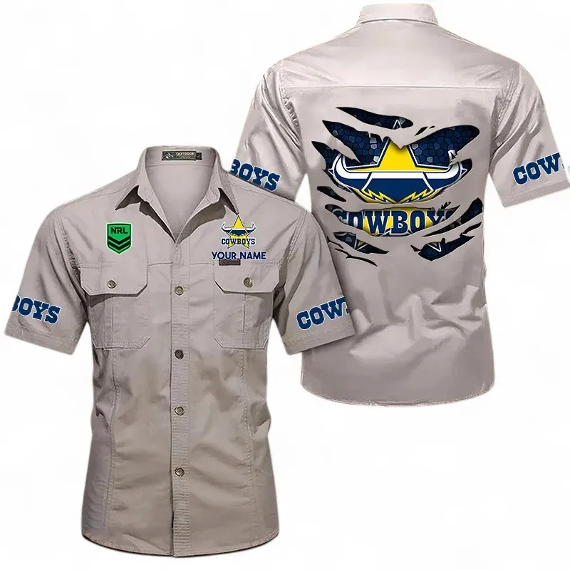 North Queensland Cowboys Fans Gift Short Sleeved Shirt, All Over Print Short Sleeved Shirt For Sport Fan, Custom Name NRL171071625564-Gray