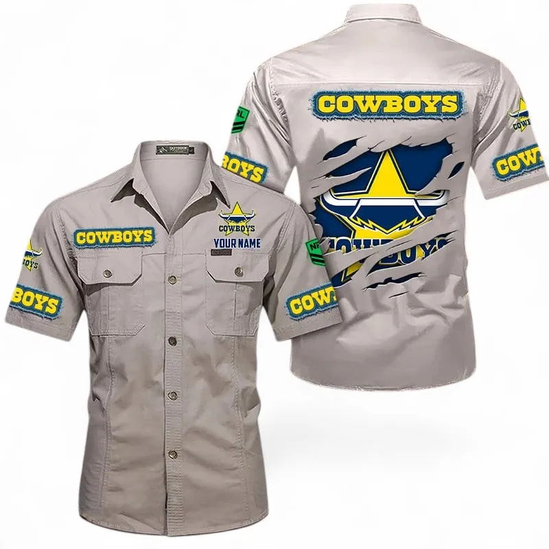 North Queensland Cowboys Fans Gift Short Sleeved Shirt, All Over Print Short Sleeved Shirt For Sport Fan, Custom Name NRL172071625346-Gray