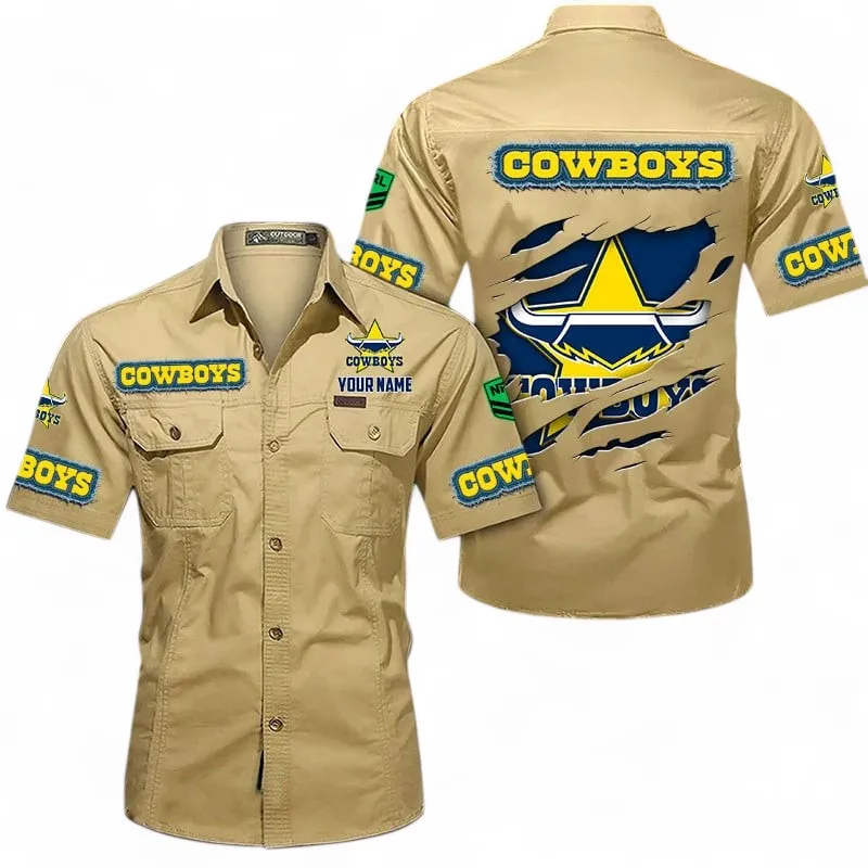 North Queensland Cowboys Fans Gift Short Sleeved Shirt, All Over Print Short Sleeved Shirt For Sport Fan, Custom Name NRL172071625346-Khaki