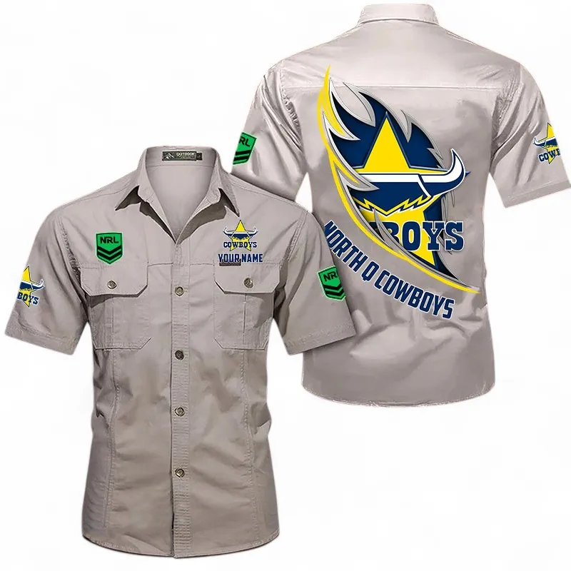 North Queensland Cowboys Fans Gift Short Sleeved Shirt, All Over Print Short Sleeved Shirt For Sport Fan, Custom Name NRL173071625003-Khaki