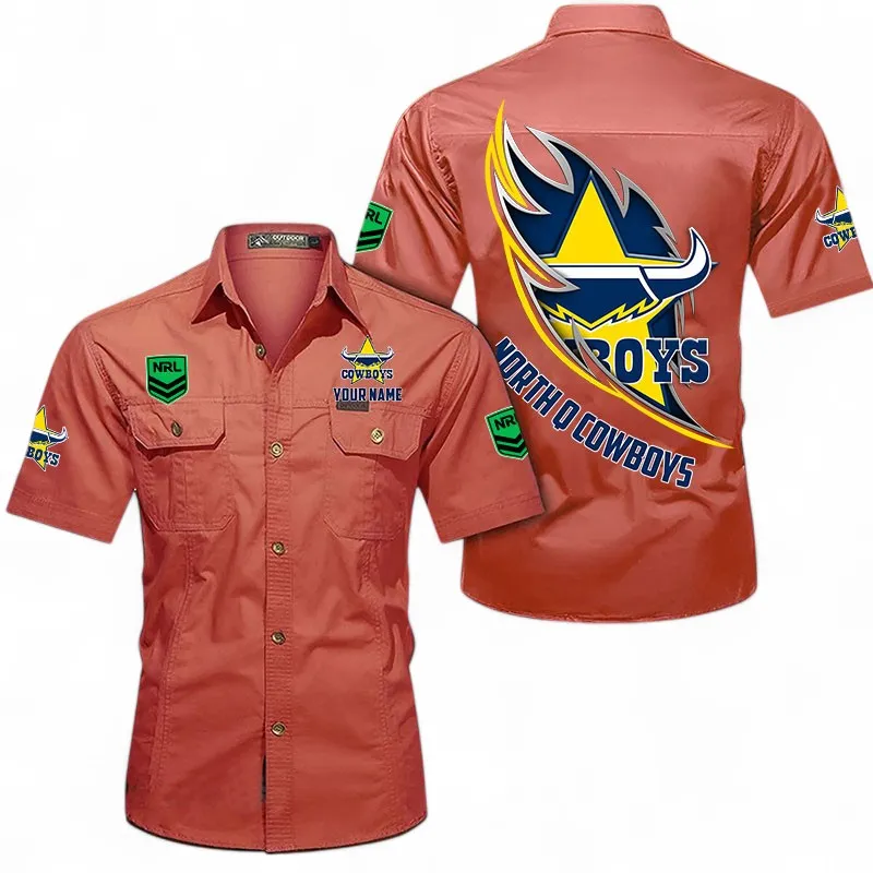 North Queensland Cowboys Fans Gift Short Sleeved Shirt, All Over Print Short Sleeved Shirt For Sport Fan, Custom Name NRL173071625003-Turmeric