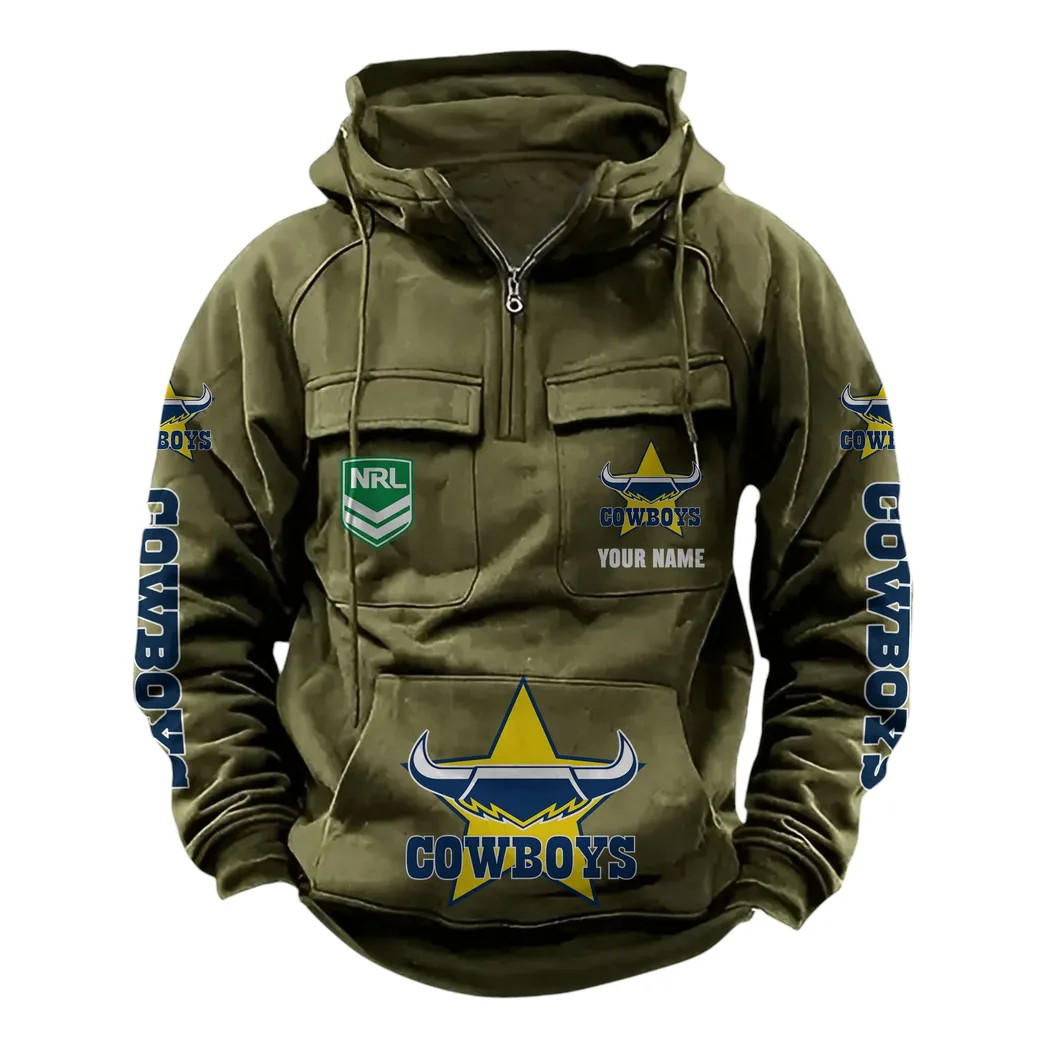 North Queensland Cowboys NRL Tactical Quarter Zip Hoodie NRL43012125563, Gift For Fan North Queensland Cowboys – Army Green