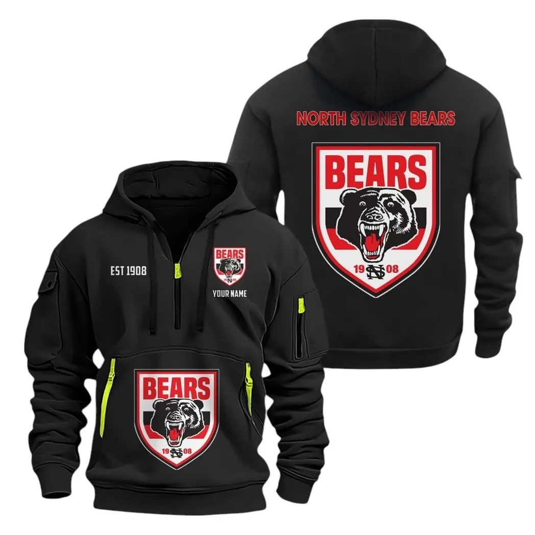 North Sydney Bears Hoodie Half Zipper, All Over Print Hoodie Half Zipper North Sydney Bears DNRL1356302039 - Black