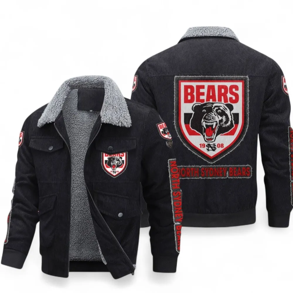 Custom North Sydney Bears Thickened Corduroy Jacket – Classic Warmth, Bold Team Spirit