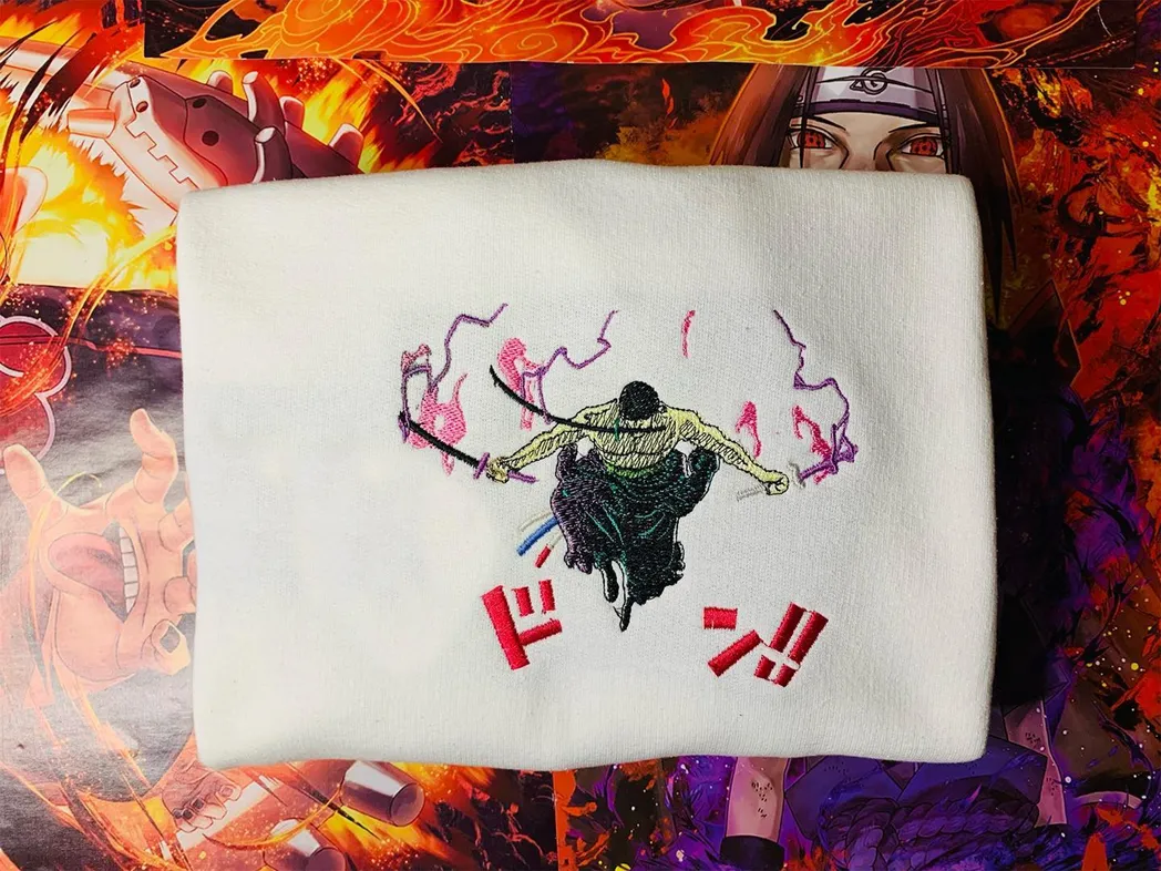 One Piece Zoro Anime Embroidered Sweatshirt Fashion Style For Couples, Valentines Gift For Him/Her