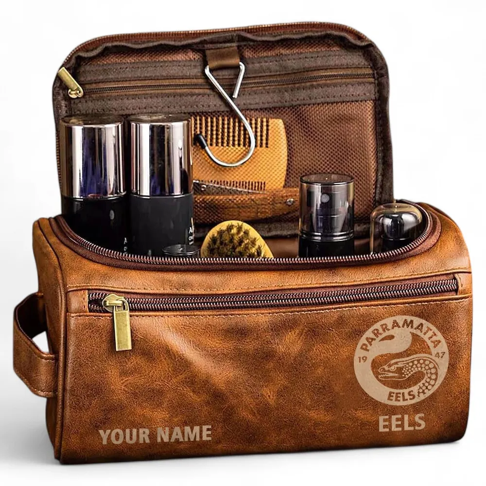 Parramatta Eels  Fans Gift Leather Toiletry Bag, All Over Print Leather Toiletry Bag For Sport Fan, Custom Name NRL177071525668-Reddish Brown