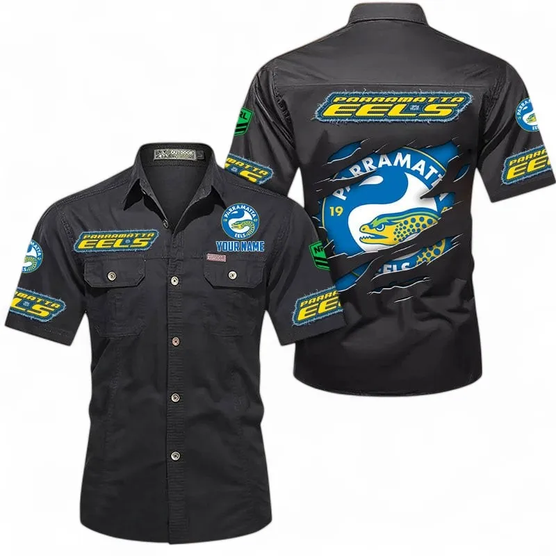 Parramatta Eels Fans Gift Short Sleeved Shirt, All Over Print Short Sleeved Shirt For Sport Fan, Custom Name NRL172071625348-Black