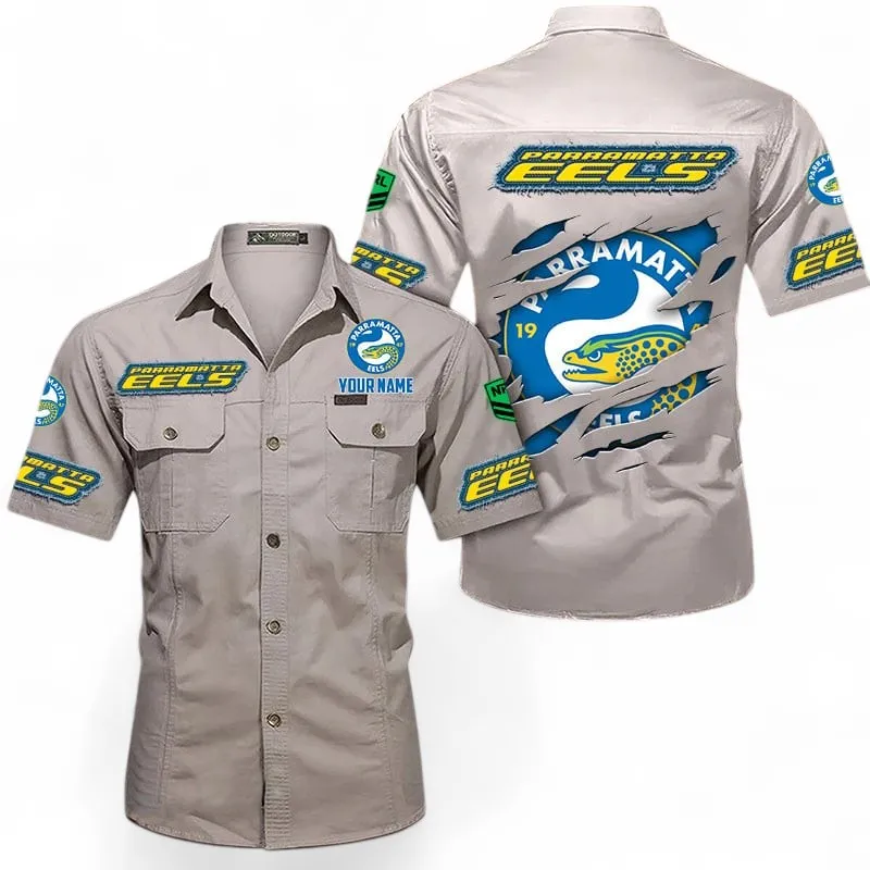 Parramatta Eels Fans Gift Short Sleeved Shirt, All Over Print Short Sleeved Shirt For Sport Fan, Custom Name NRL172071625348-Gray