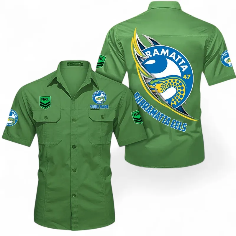 Parramatta Eels Fans Gift Short Sleeved Shirt, All Over Print Short Sleeved Shirt For Sport Fan, Custom Name NRL173071625013-Army Green