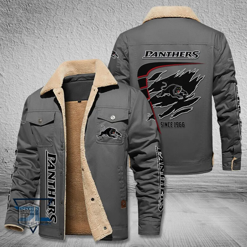 Penrith Panthers Jacket Fur Collar Fleece, All Over Print Jacket Fur Collar Fleece For Sport Fan, Custom Name NRL191080225784-Gray
