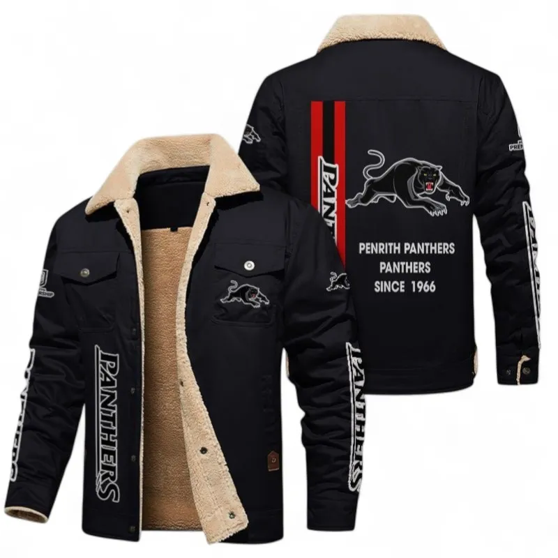 Penrith Panthers Jacket Fur Collar Fleece, All Over Print Jacket Fur Collar Fleece For Sport Fan NRL178072225666-Black