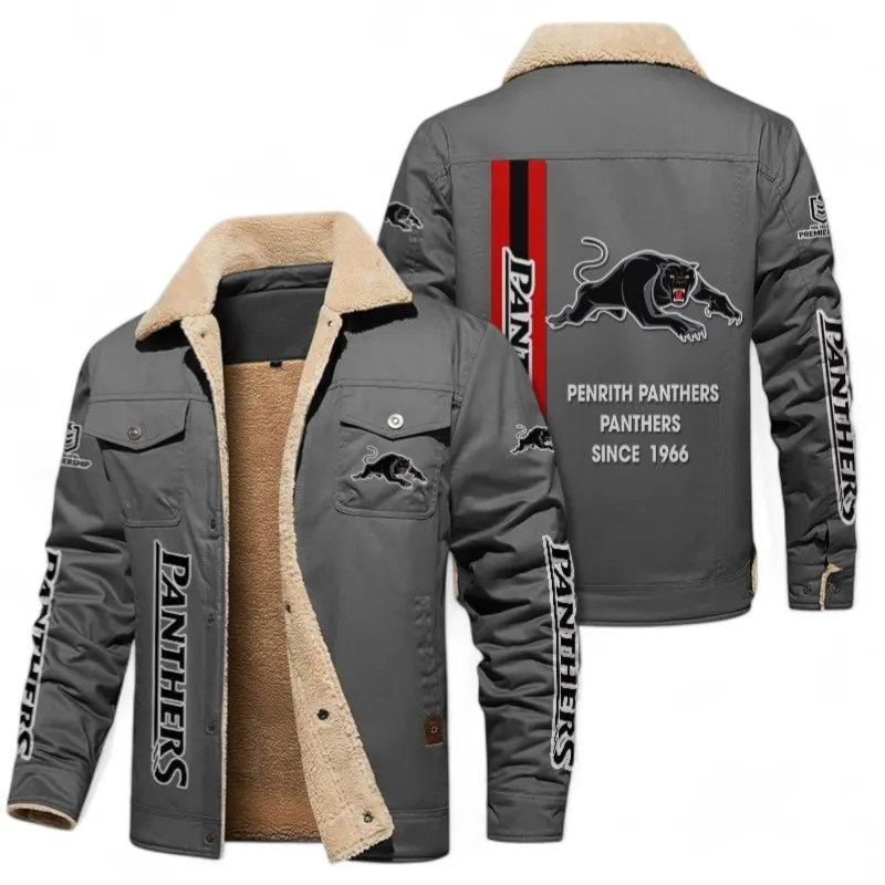 Penrith Panthers Jacket Fur Collar Fleece, All Over Print Jacket Fur Collar Fleece For Sport Fan NRL178072225666-Gray