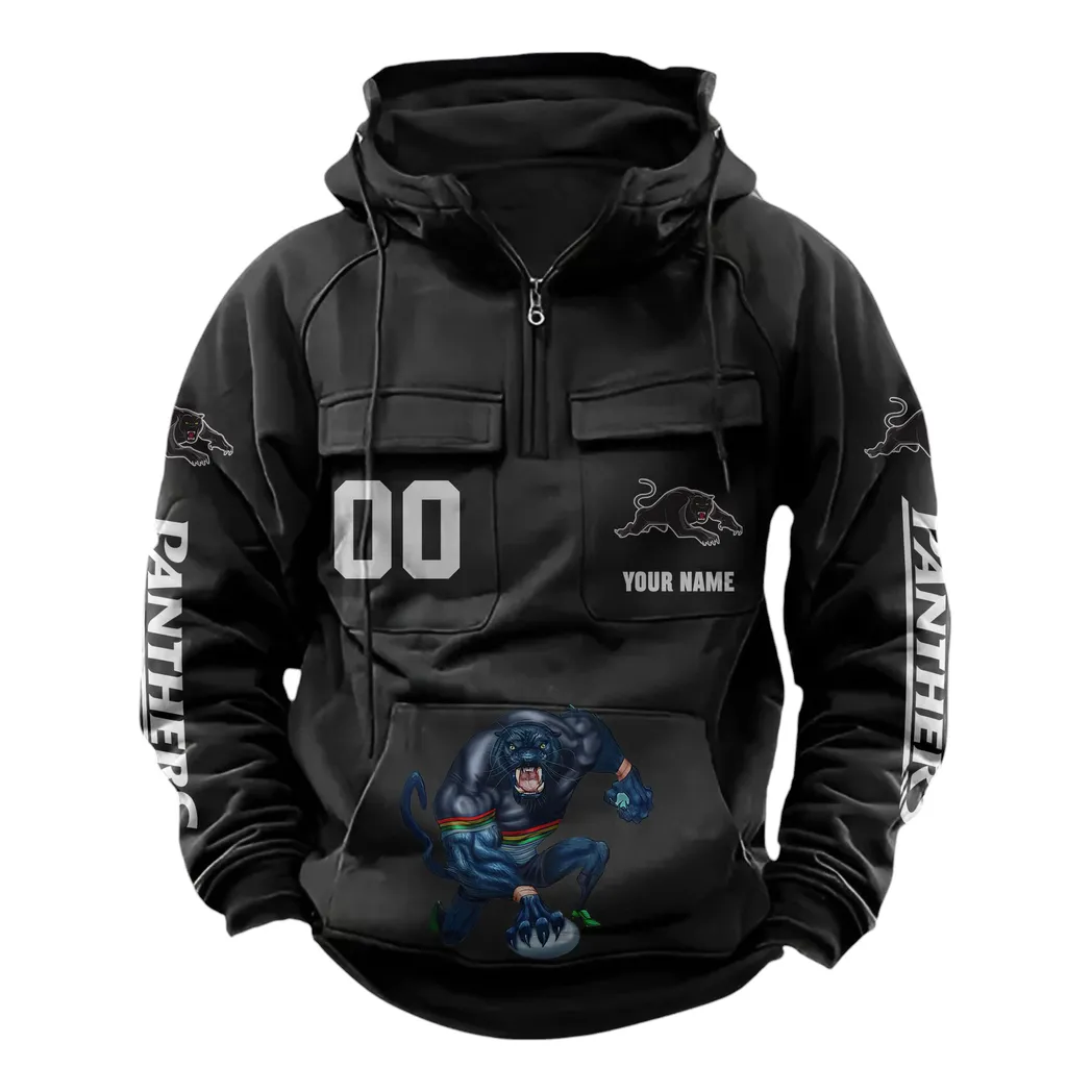 Penrith Panthers NRL Tactical Quarter Zip Hoodie NRL43012125592, Gift For Fan Penrith Panthers - Black