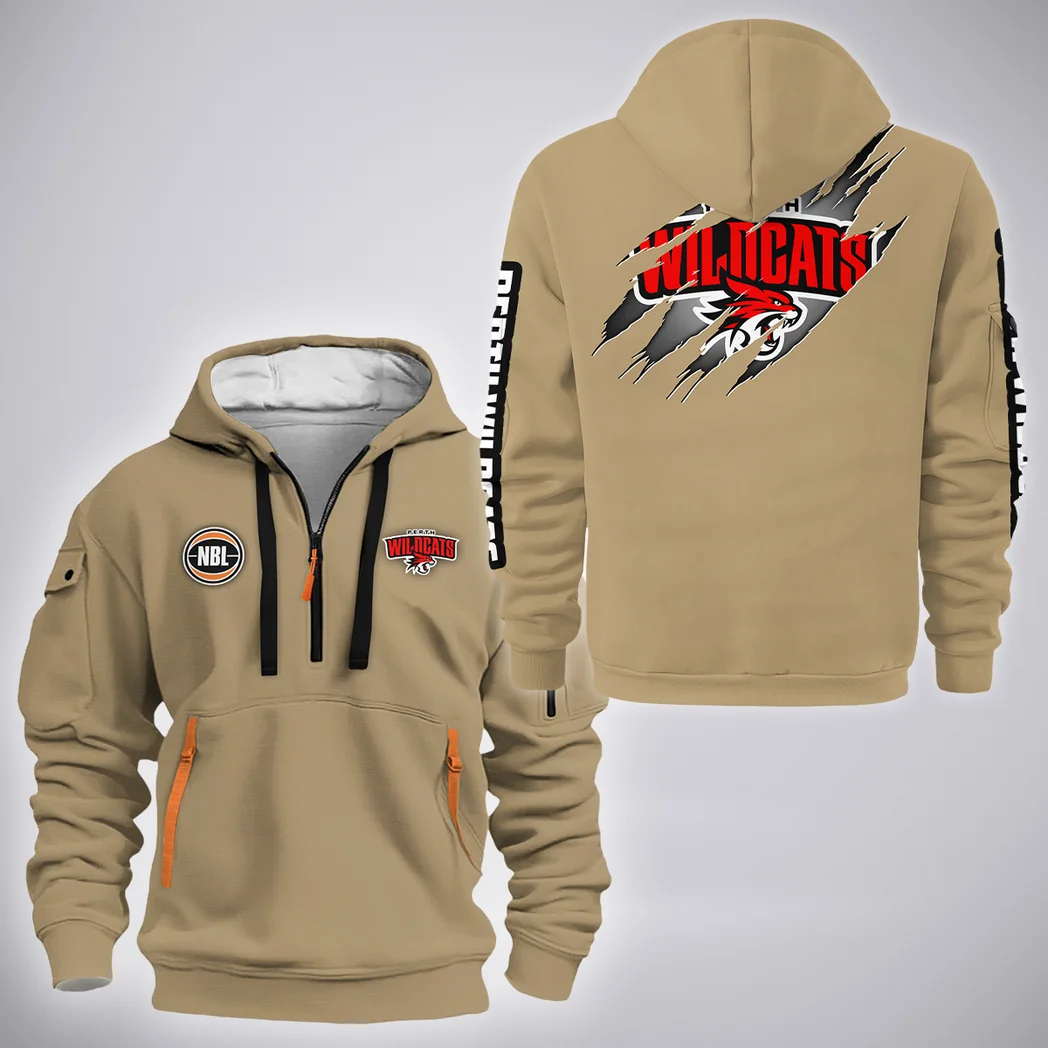 Perth Wildcats Hoodie Half Zipper NBL 2025 For Fan Perth Wildcats HVN1162072525PWHODZ – Khaki