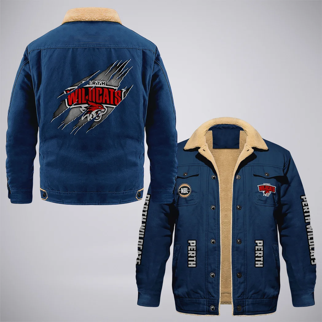 Perth Wildcats Jacket Fur Collar Fleece NBL 2025 For Fan Perth Wildcats HVN1162072525PW HVN1162072525PWCFJ – Blue