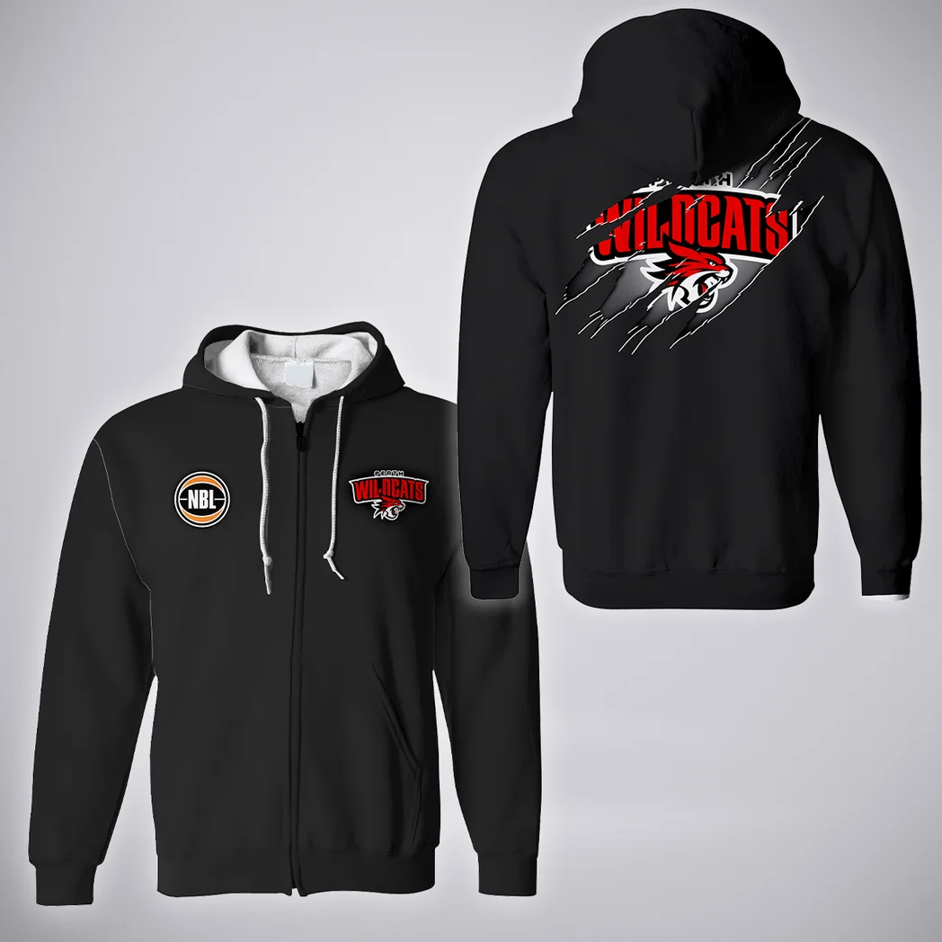 Perth Wildcats Zipper Hoodie NBL 2025 For Fan Perth Wildcats HVN1162072525PW HVN1162072525PWZHD – Black