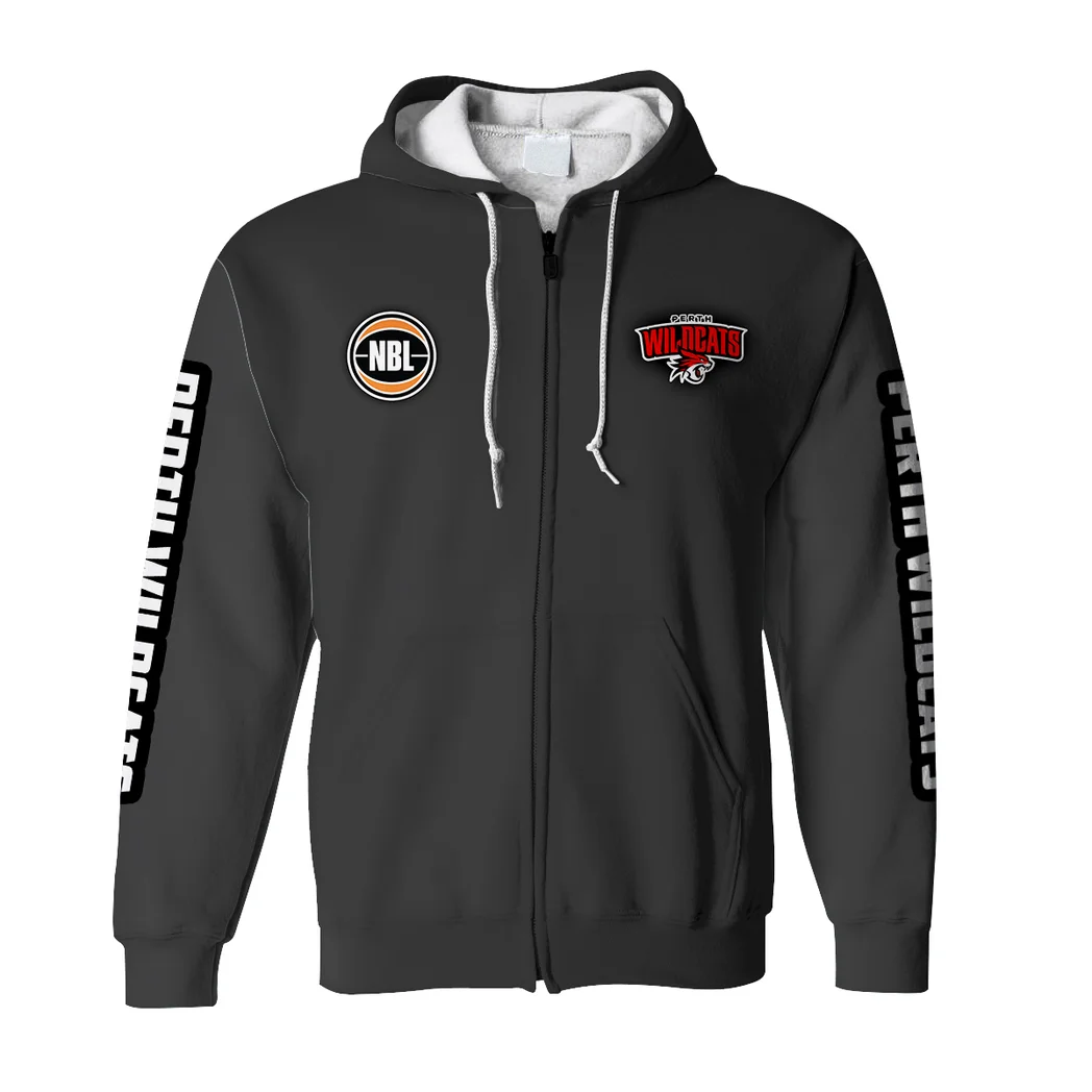 Perth Wildcats Zipper Hoodie  NBL 2025 For Fan Perth Wildcats HVN1162072525PW HVN1162072525PWZHD - Black