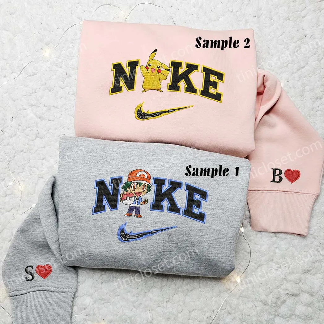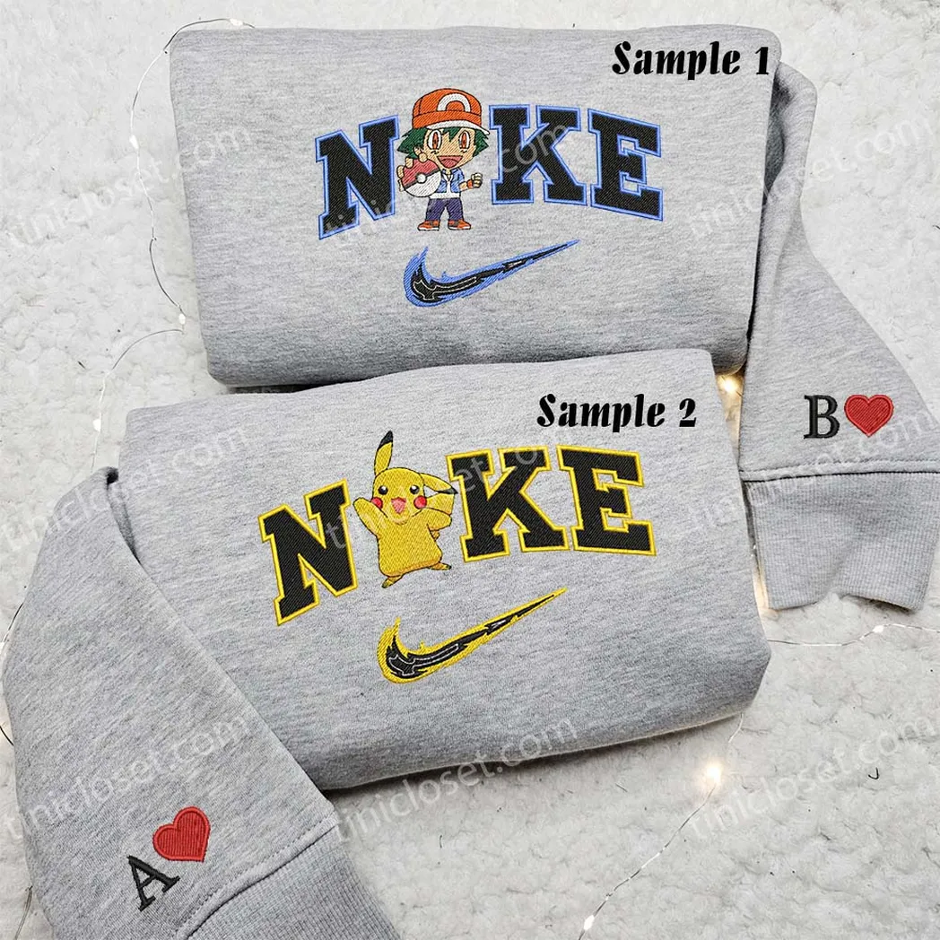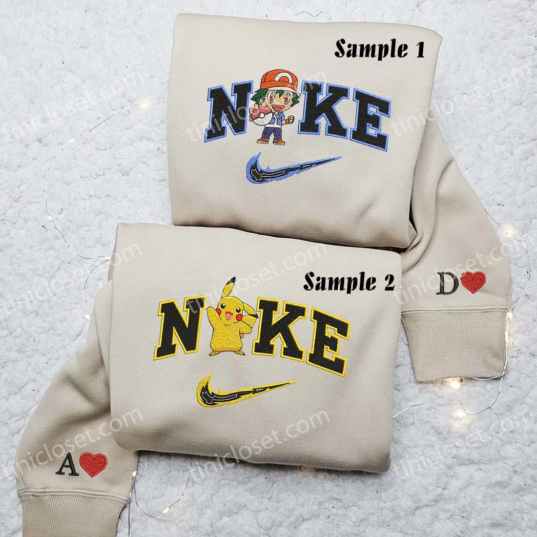 Pikachu and Ash Pokemon x Nike Embroidered Shirt, Embroidered Sweatshirt Fashion Style For Couples