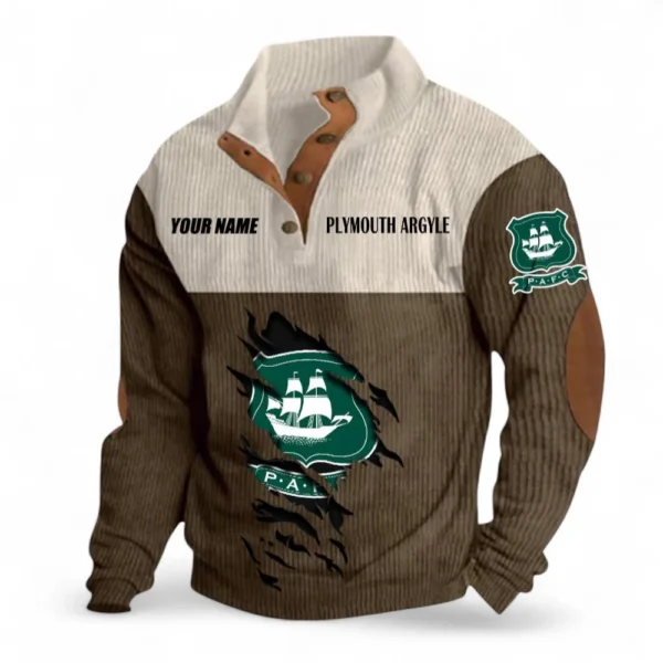 Plymouth Argyle Fans Gift Men’s Stand Up Collar Base Shirt, All Over Print Men’s Stand Up Collar Base Shirt For Sport Fan, Custom Name EPL117073125249-Brown