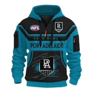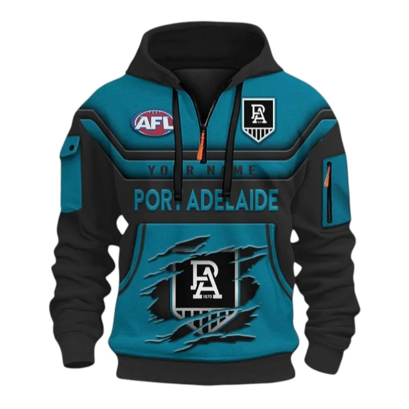 Order your custom Port Adelaide 3D Printed Half-Zip Hoodie today and rep your team in unmatched comfort and visual impact on and off the field.
